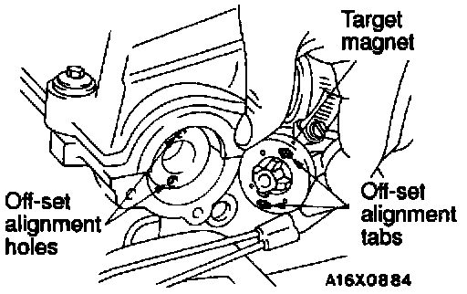 Align the tabs with the holes to install the target magnet to the camshaft.