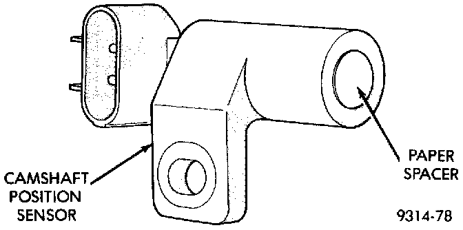 The camshaft position sensor is mounted in the flout of the timing case cover (Fig. 8).