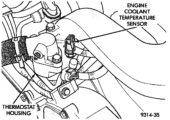 NOTE: The engine coolant temperature sensor is located next to the thermostat housing (Fig. 97).