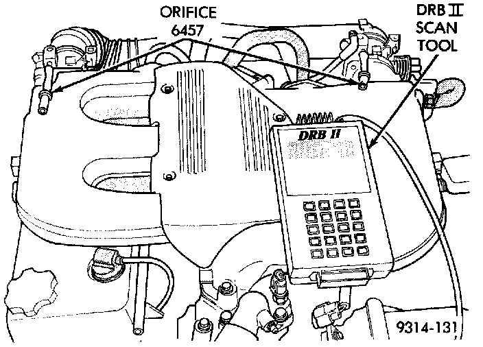 13. Remove orifice 6457 from each throttle body. Install purge hoses.