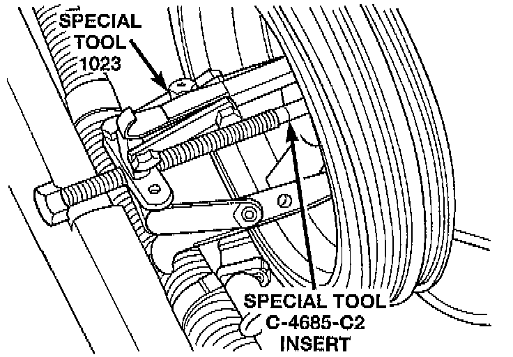 6. Use Special Tool C-3281, or equivalent to hold crankshaft damper while removing center bolt.