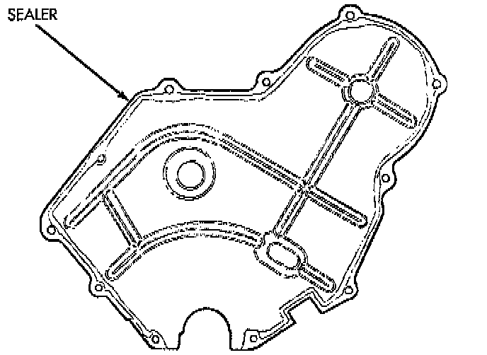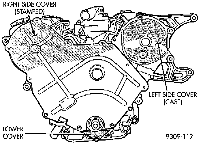 8. Remove the stamped steel cover. Do not remove the sealer on the cover, it is reusable. If some sealer is missing use Mopar Silicone Rubber Adhesive Sealant or equivalent to replace the missing sealer.