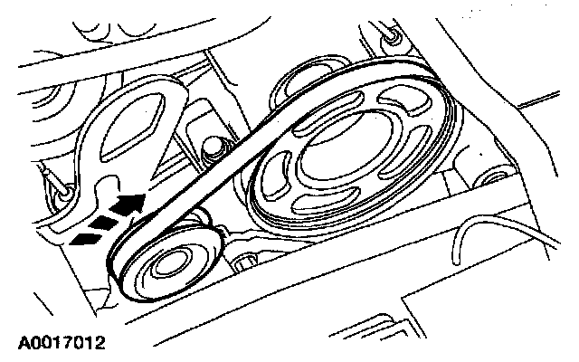 2. Rotate the drive belt tensioner clockwise and remove the water pump belt.