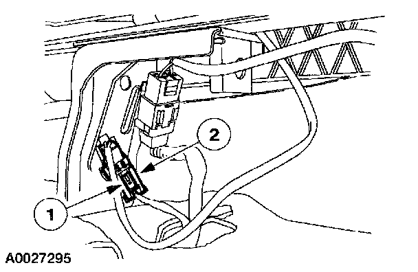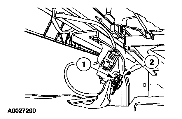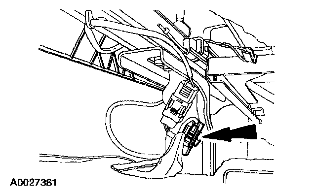 1 Remove the passenger safety belt buckle pretensioner electrical connector from the bracket under the seat.