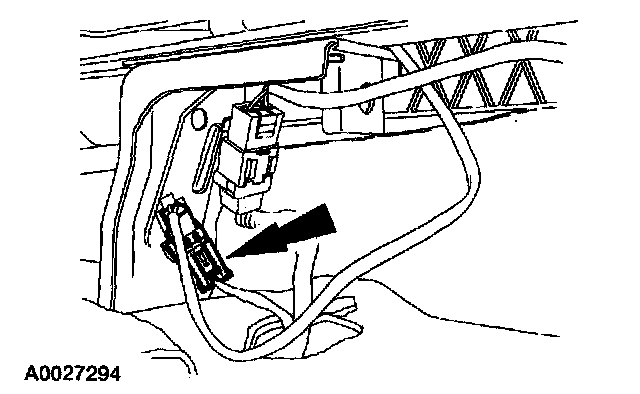 9. Attach the restraint system diagnostic tool to the driver side air bag module floor electrical connector.