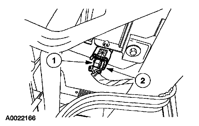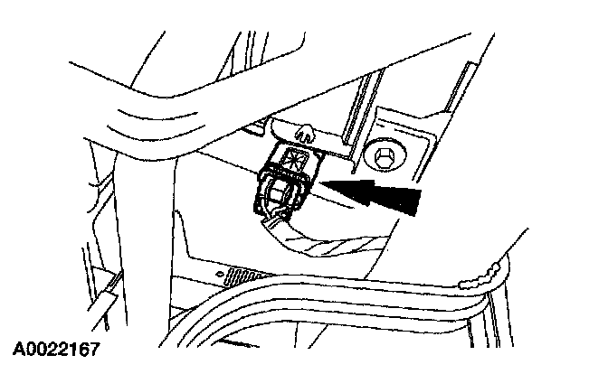 1 Remove the passenger safety belt buckle pretensioner electrical connector from the bracket under the seat.