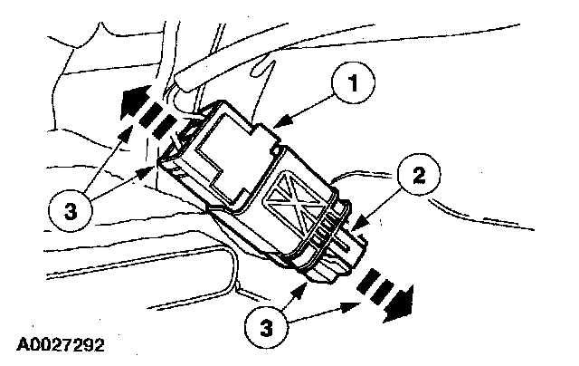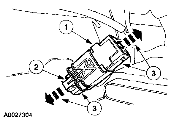 1 Push to release the passenger air bag module electrical connector locking clip.