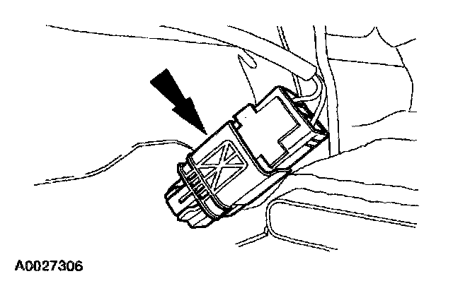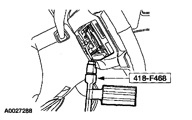 9. Attach the restraint system diagnostic tool to the driver safety belt buckle pretensioner floor electrical connector.