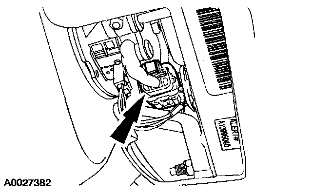 11. Remove the restraint system diagnostic tool from the clockspring electrical connector at the top of the steering column.