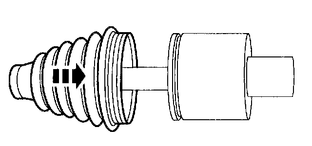 6. Remove any excess grease on the mating surfaces and slide the outboard halfshaft joint boot forward onto the outboard CV joint.