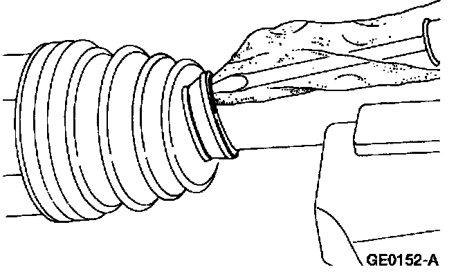 7. Remove any excess air trapped in the outboard halfshaft boot using a cloth covered screwdriver after adjusting the outboard halfshaft boot spacing.