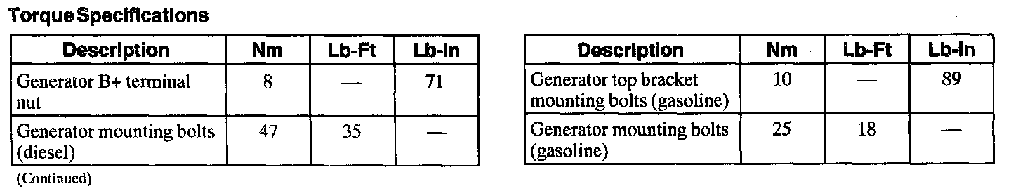 Torque Specifications: