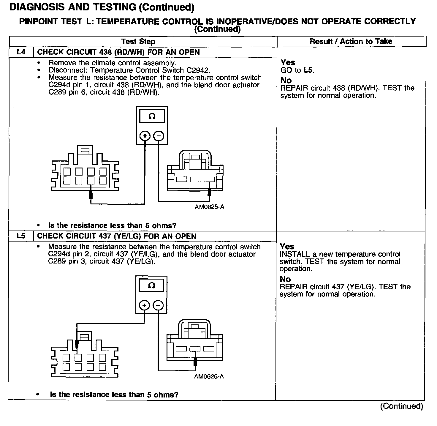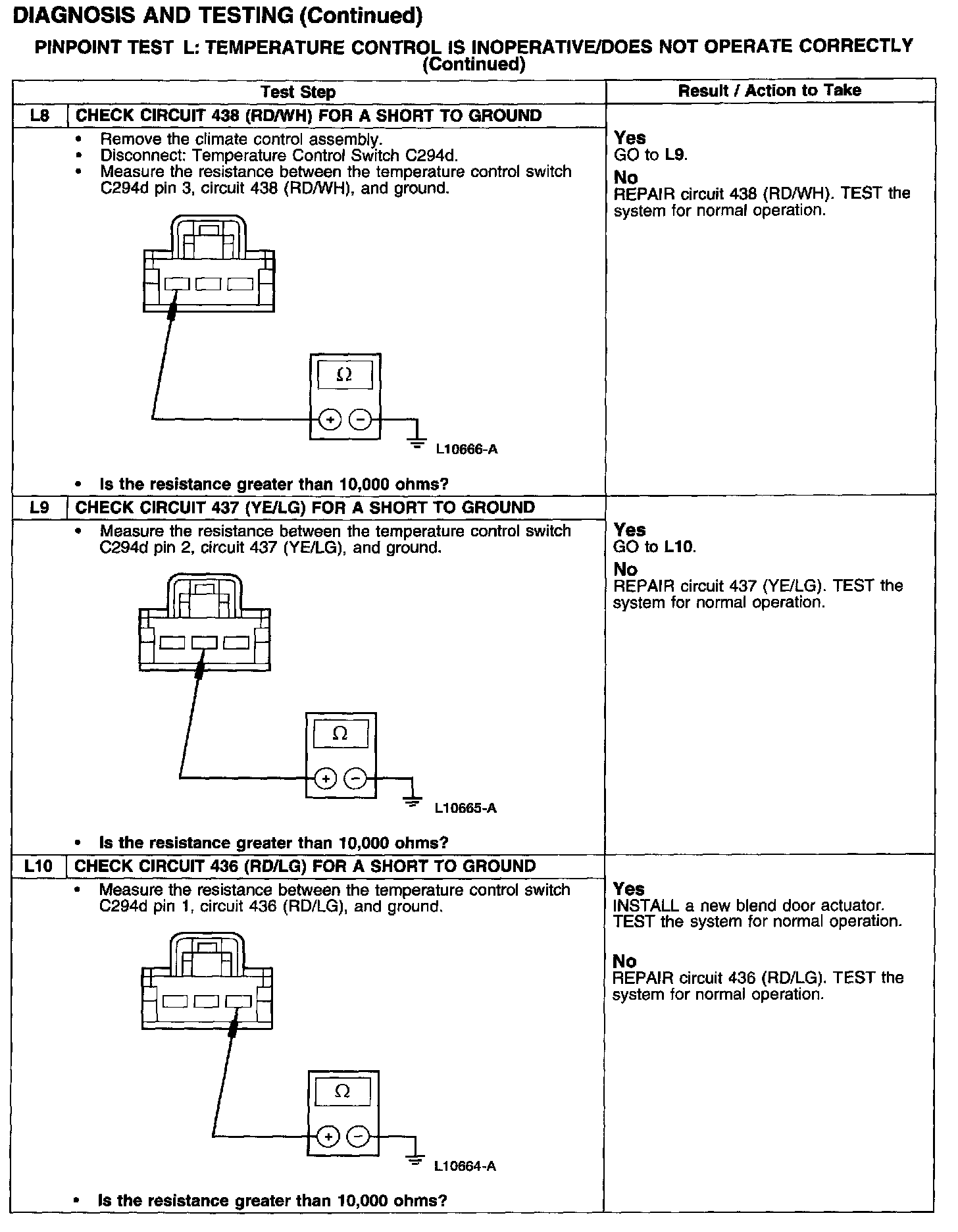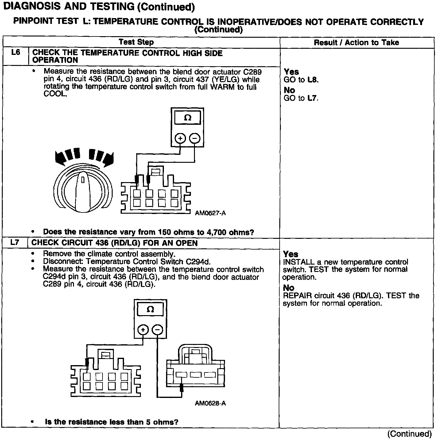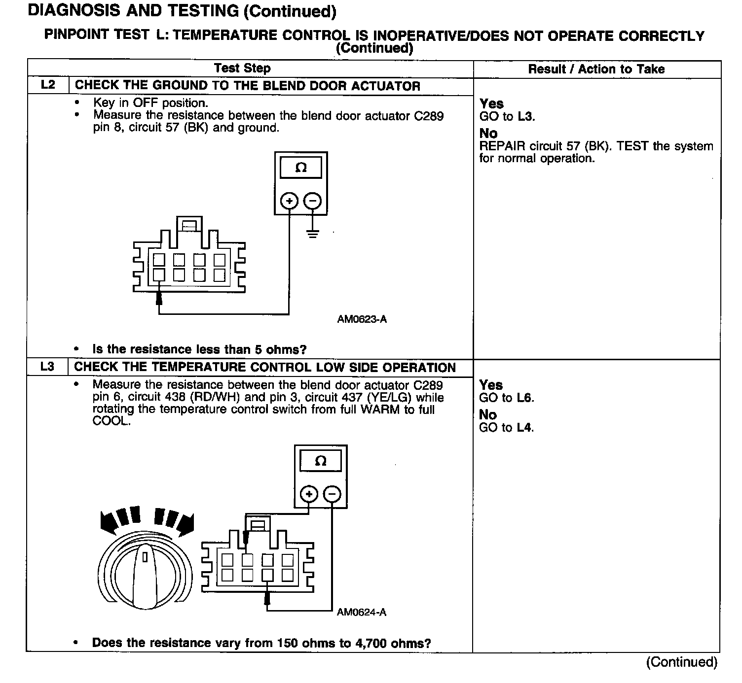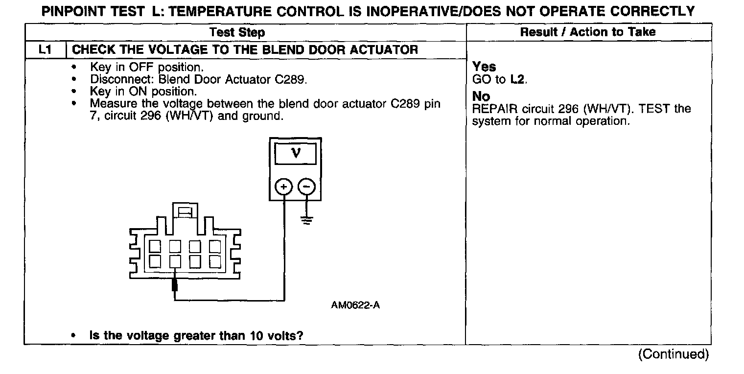 PINPOINT TEST L: TEMPERATURE CONTROL IS INOPERATIVE/DOES NOT OPERATE CORRECTLY