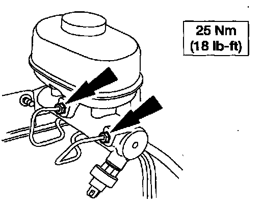 5. If the brake master cylinder is being primed at the bench, install it in the vehicle.