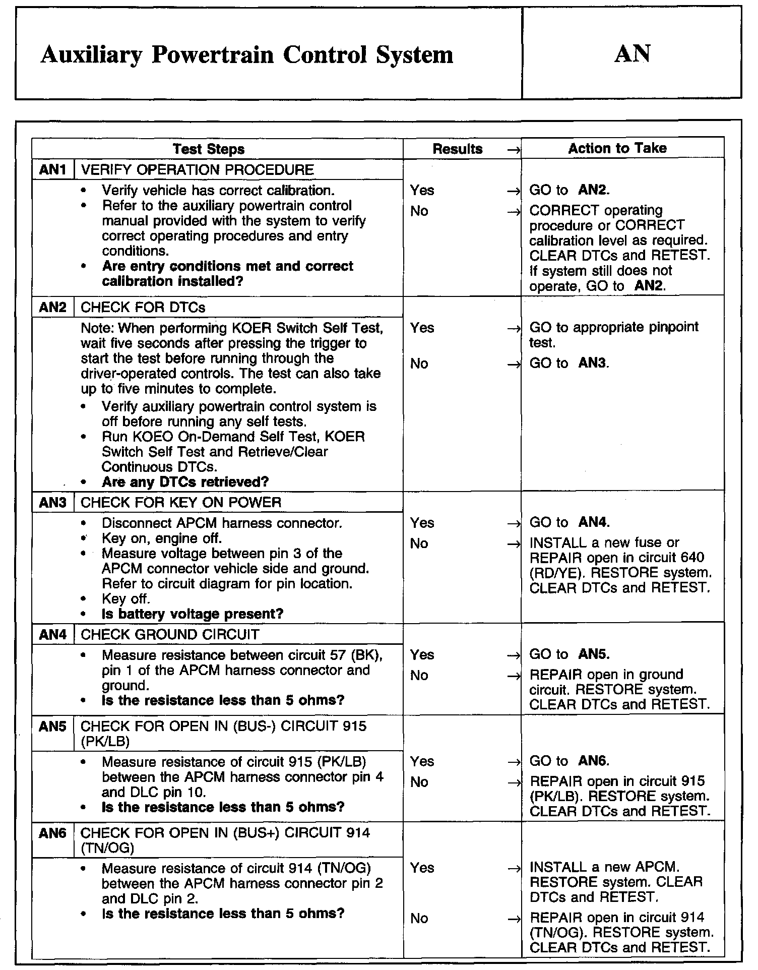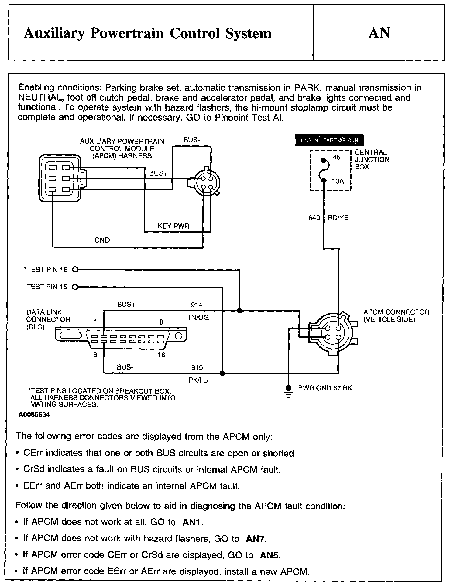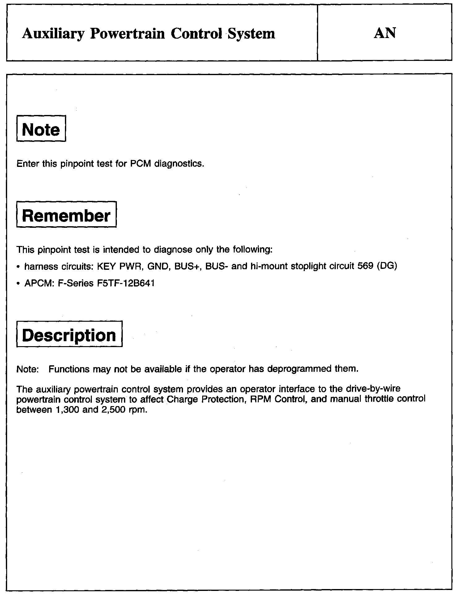 PINPOINT TEST AN: AUXILIARY POWERTRAIN CONTROL SYSTEM