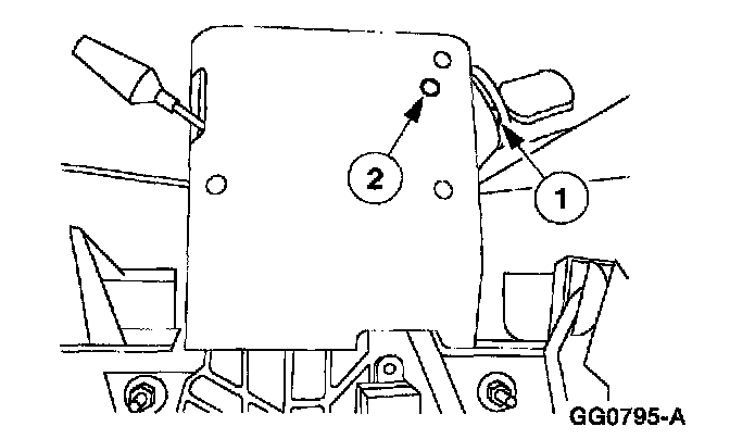 2 Using a 1/8-inch drift, press the ignition switch lock cylinder release pin through the access hole while pulling out the ignition switch lock cylinder.