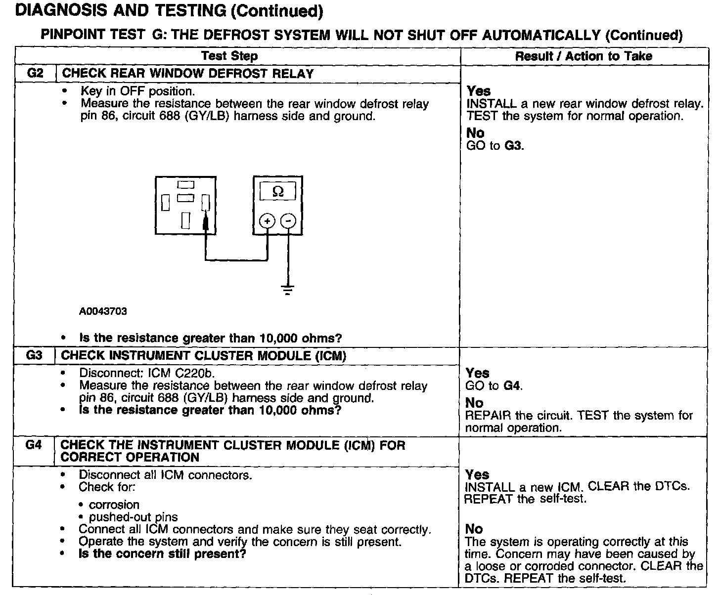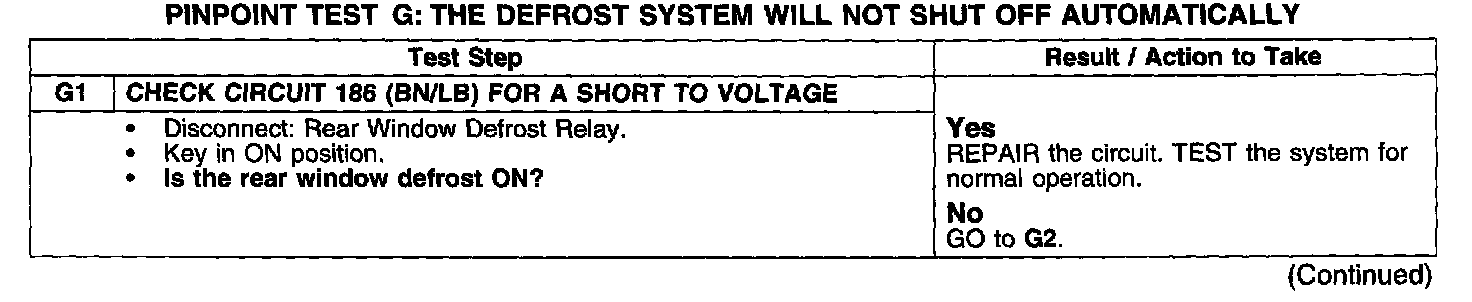 PINPOINT TEST G: THE DEFROST SYSTEM WILL NOT SHUT OFF AUTOMATICALLY
