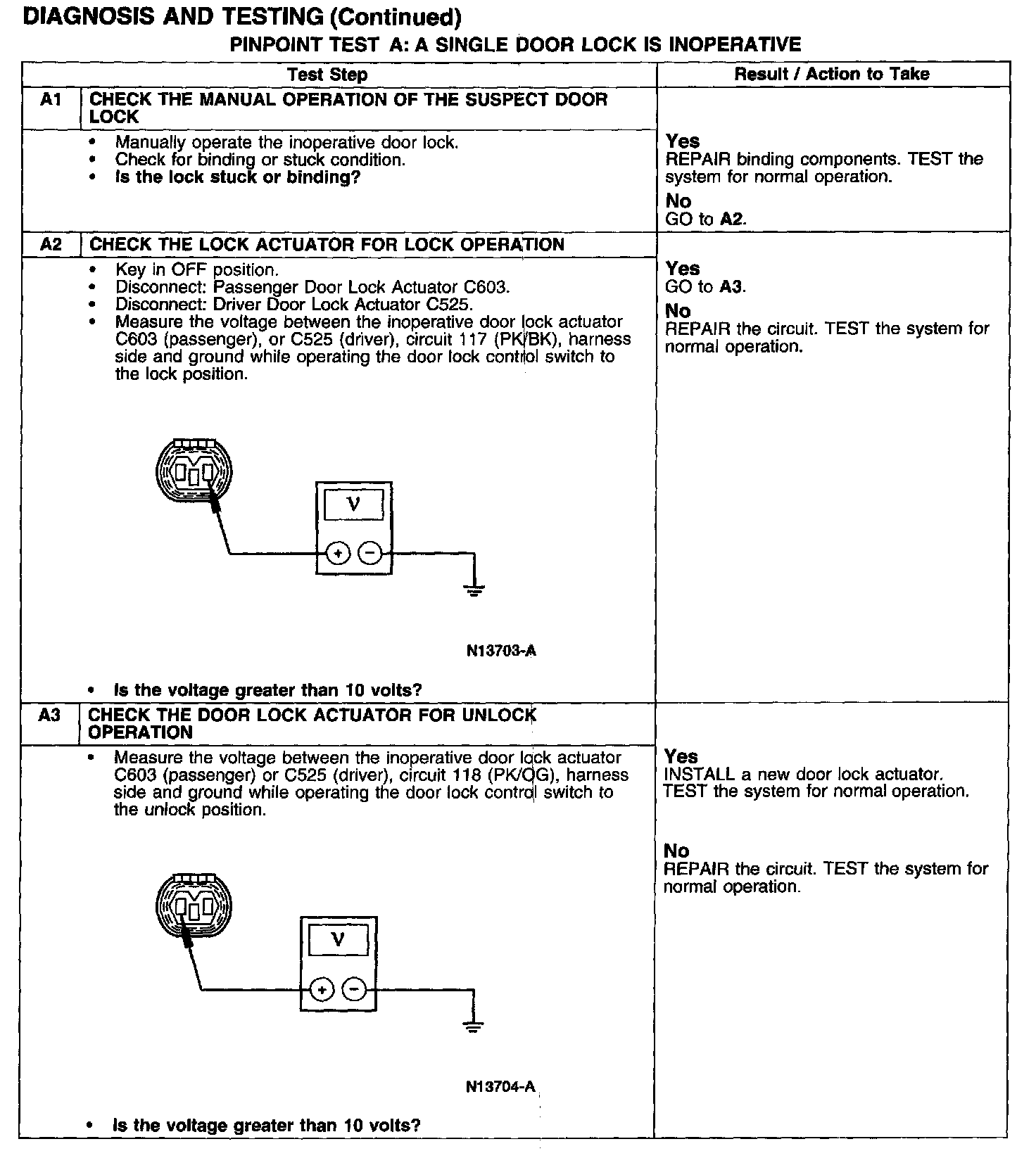 PINPOINT TEST A: A SINGLE DOOR LOCK IS INOPERATIVE