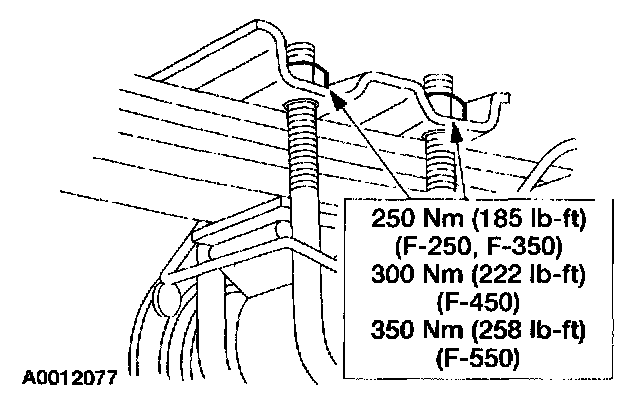 3. Remove and discard the four nuts and two U-bolts to allow the rear axle to separate from the rear spring.