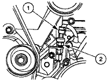 2.- NOTE: The fan and fan clutch are removed for clarity.
