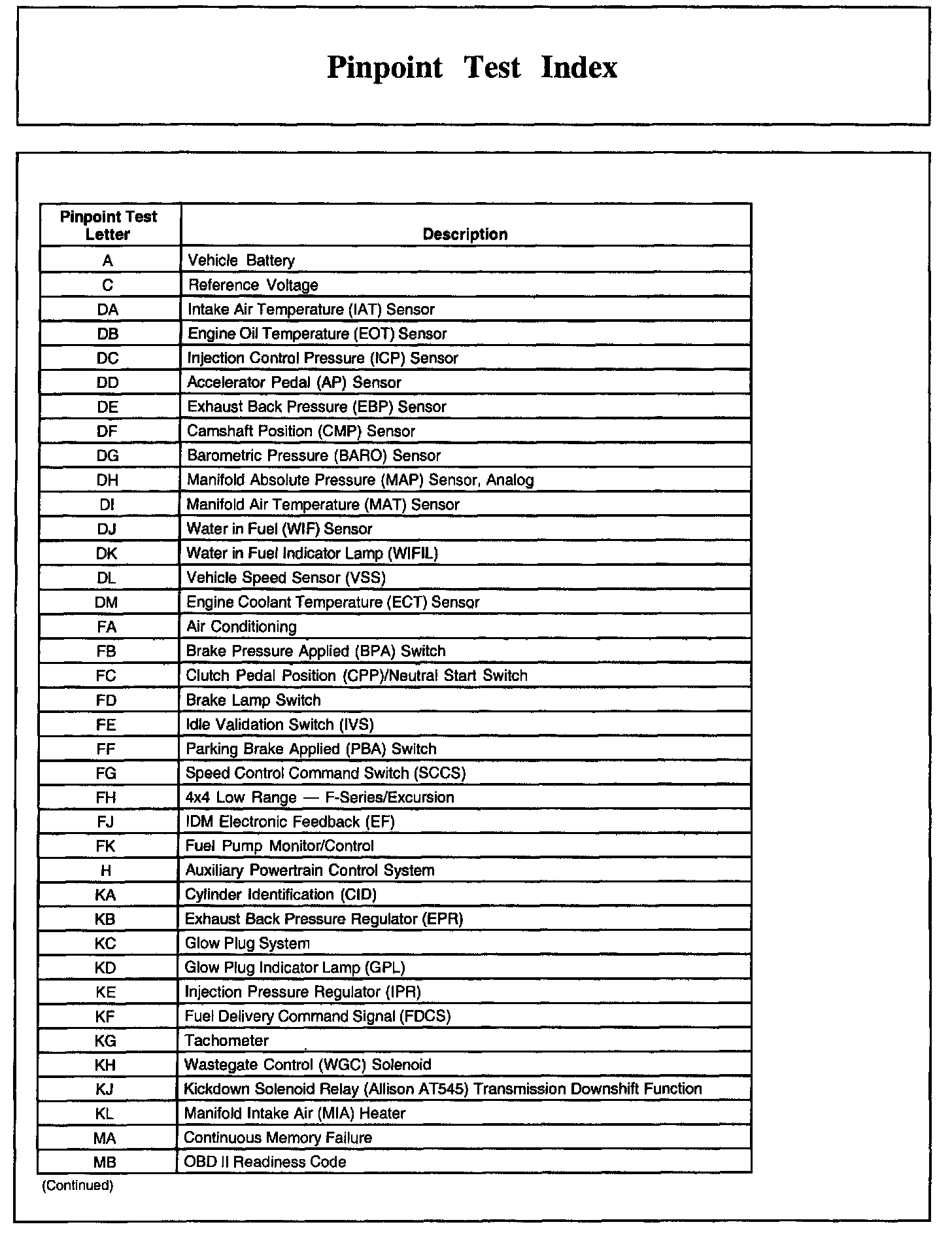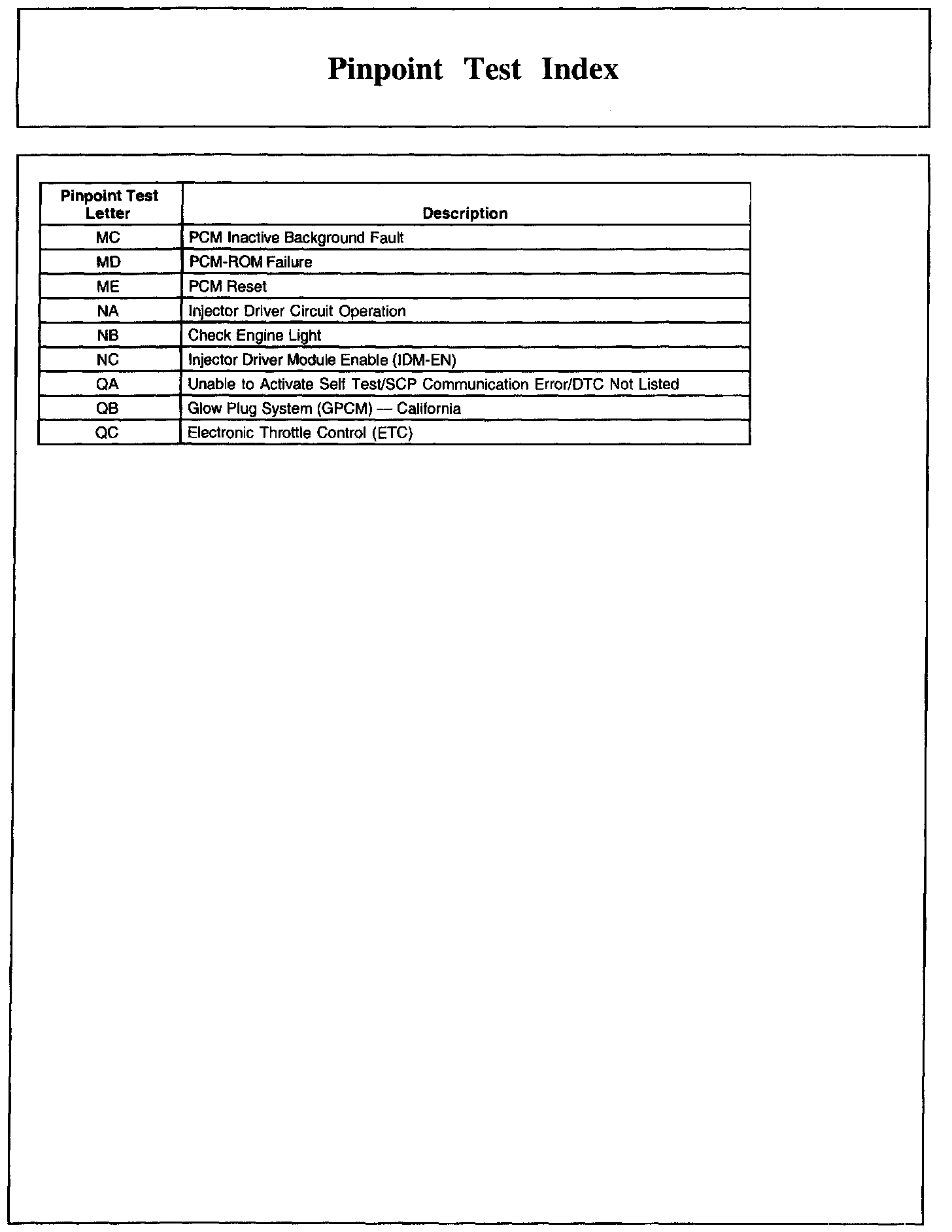 Pinpoint Test Index, Part 1: