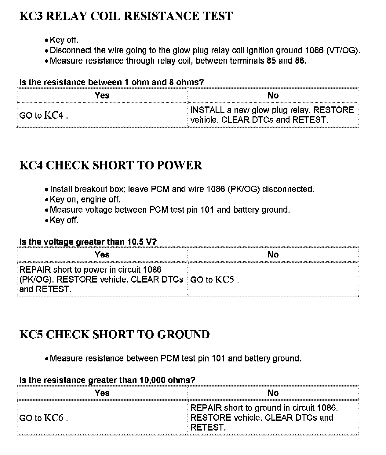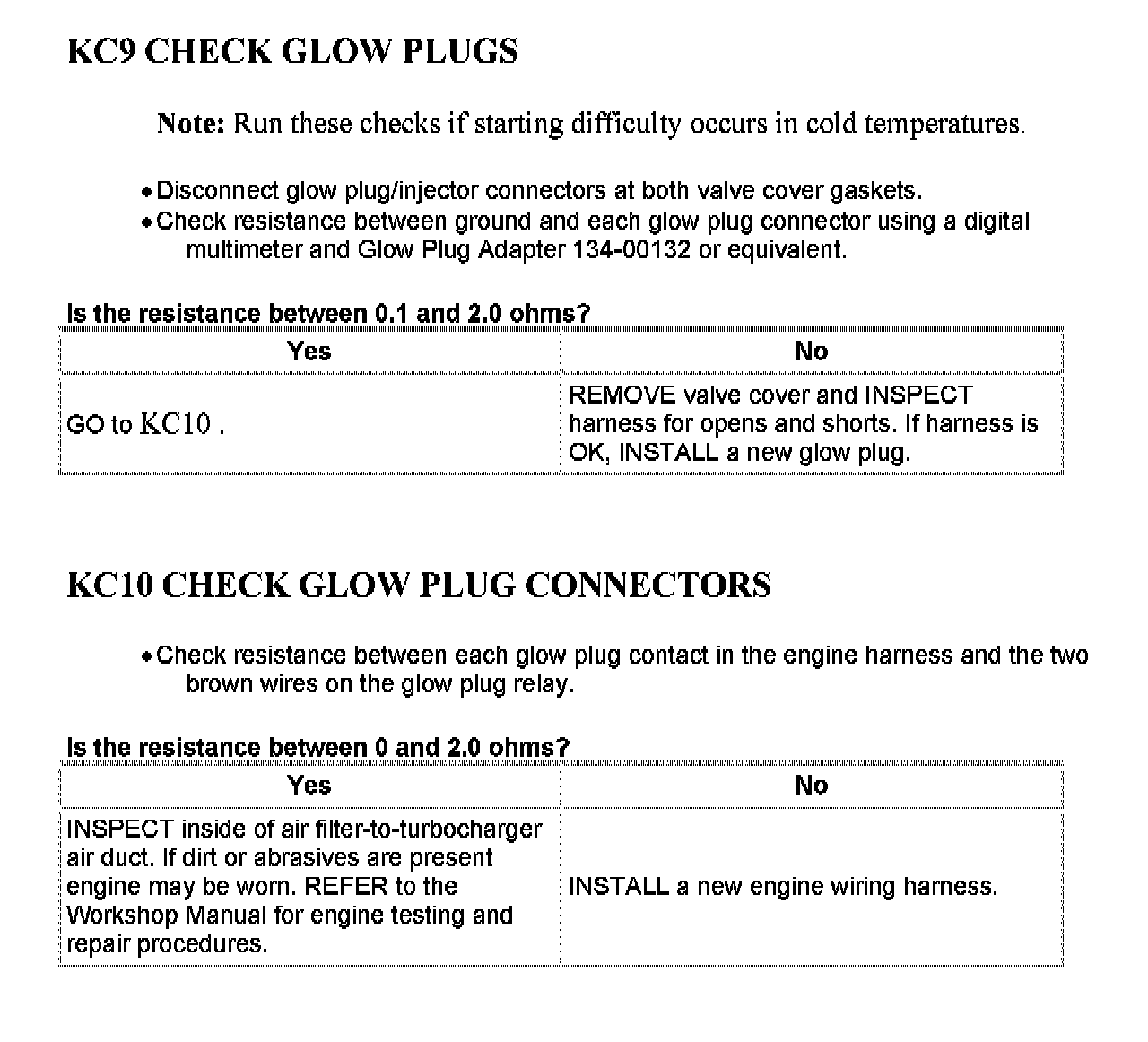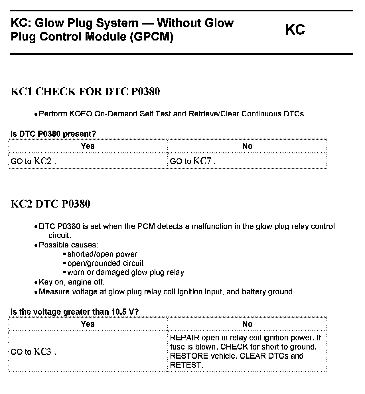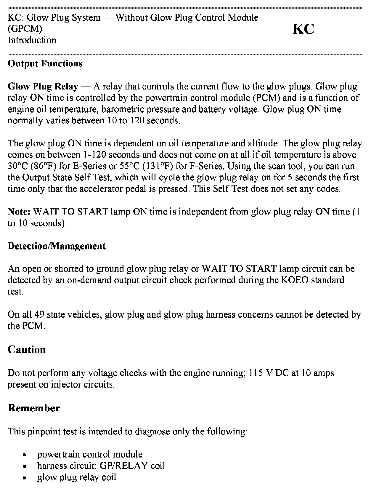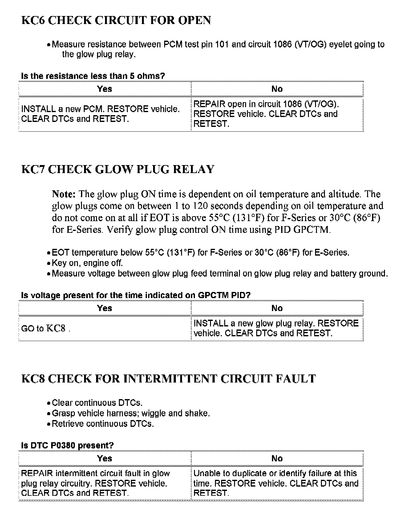 Tests KC: Glow Plug System - Without Glow Plug Control Module (GPCM)