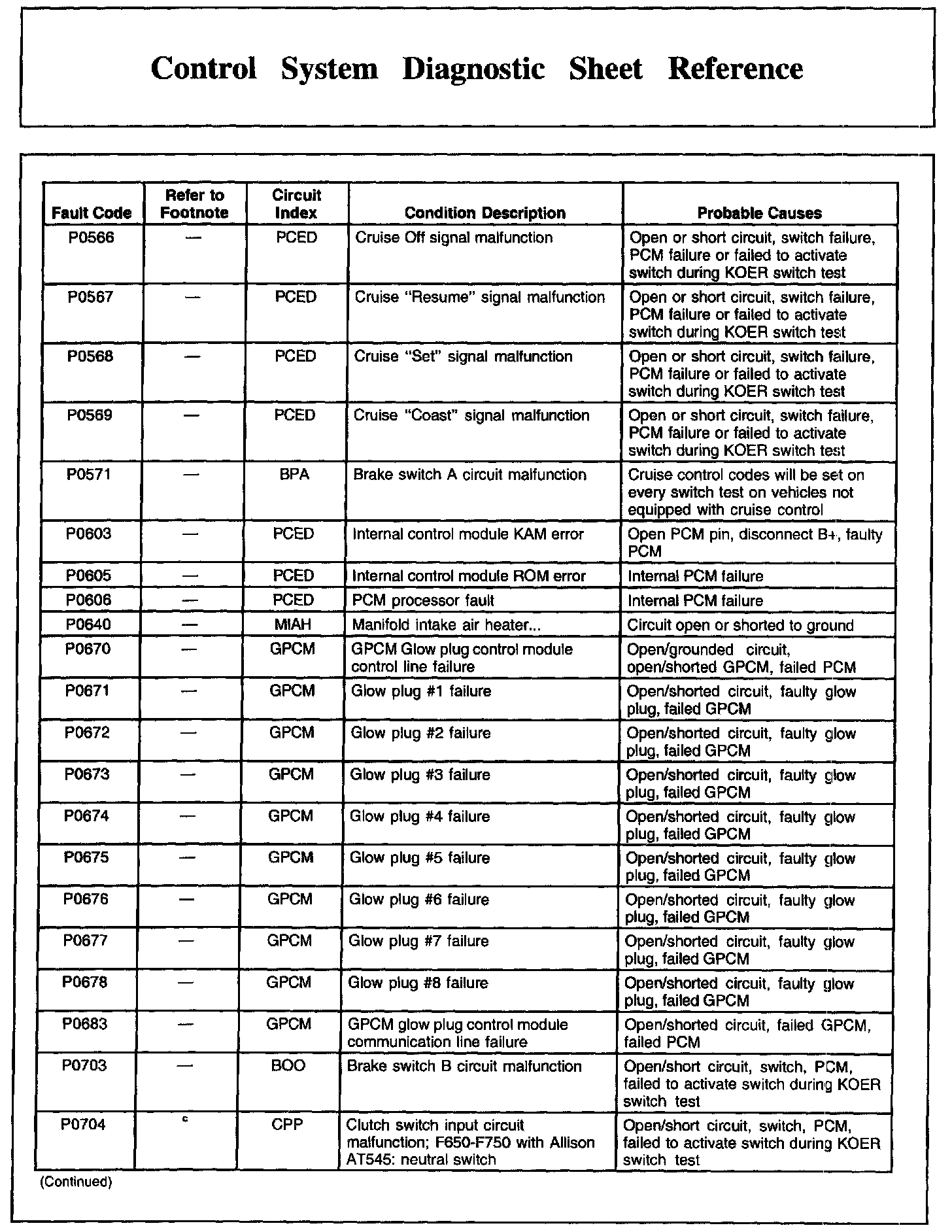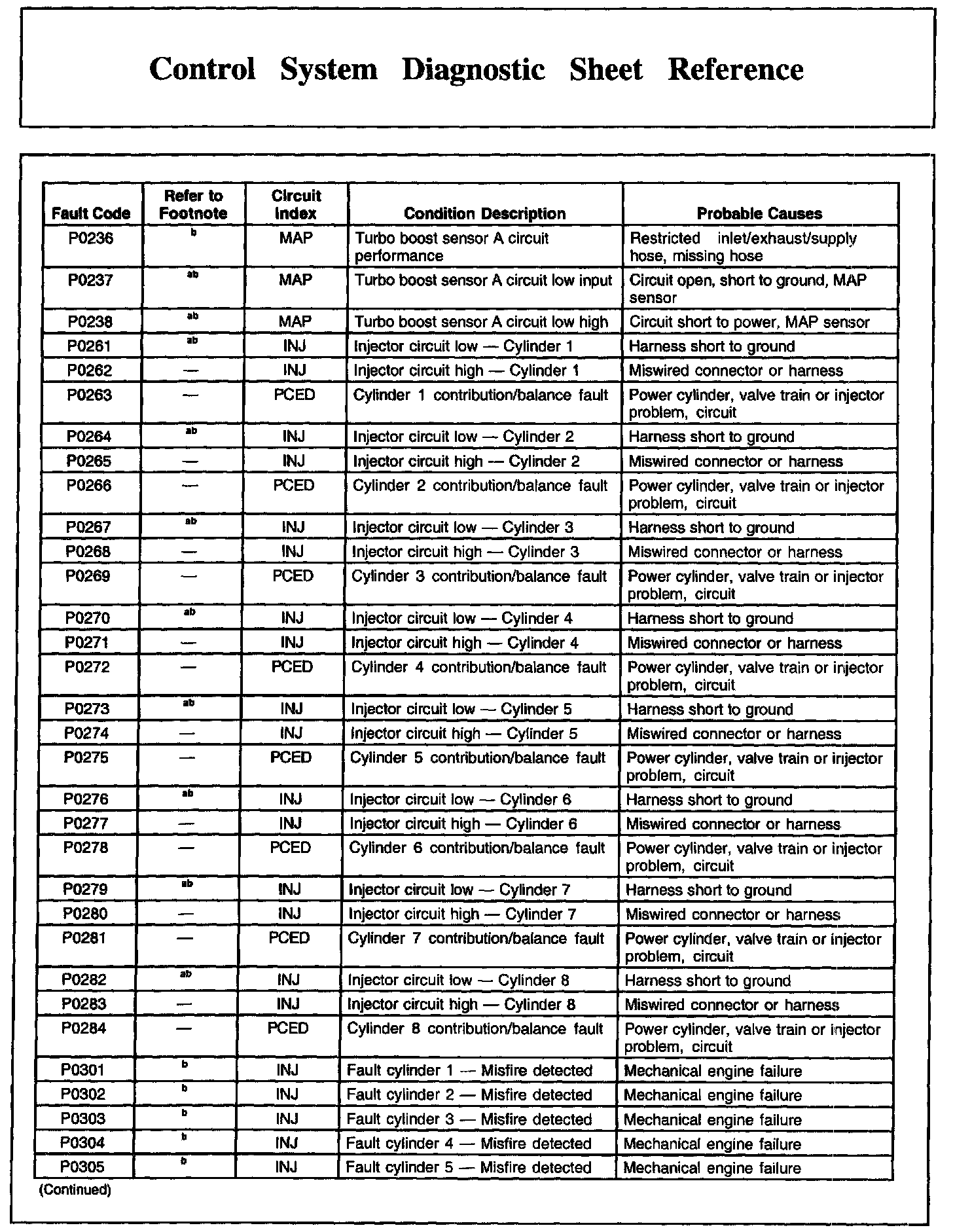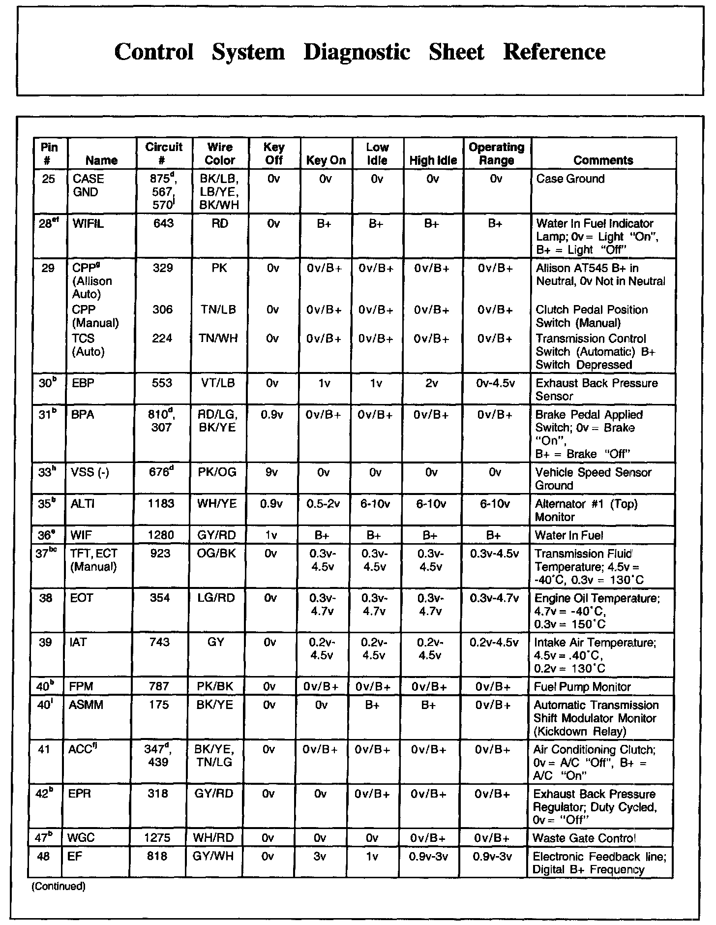 Control System Diagnostic Sheet Reference, Part 7: