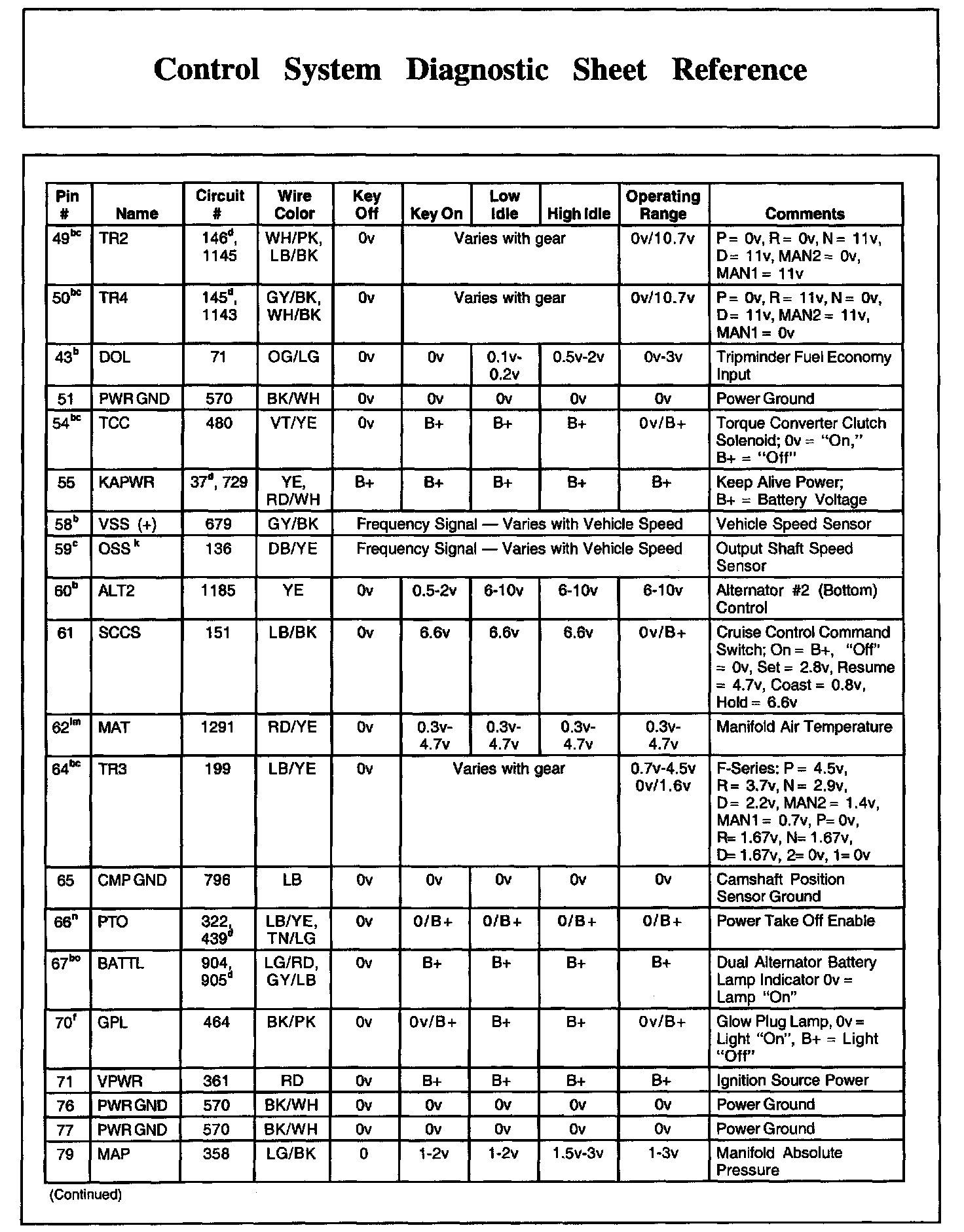 Control System Diagnostic Sheet Reference, Part 3: