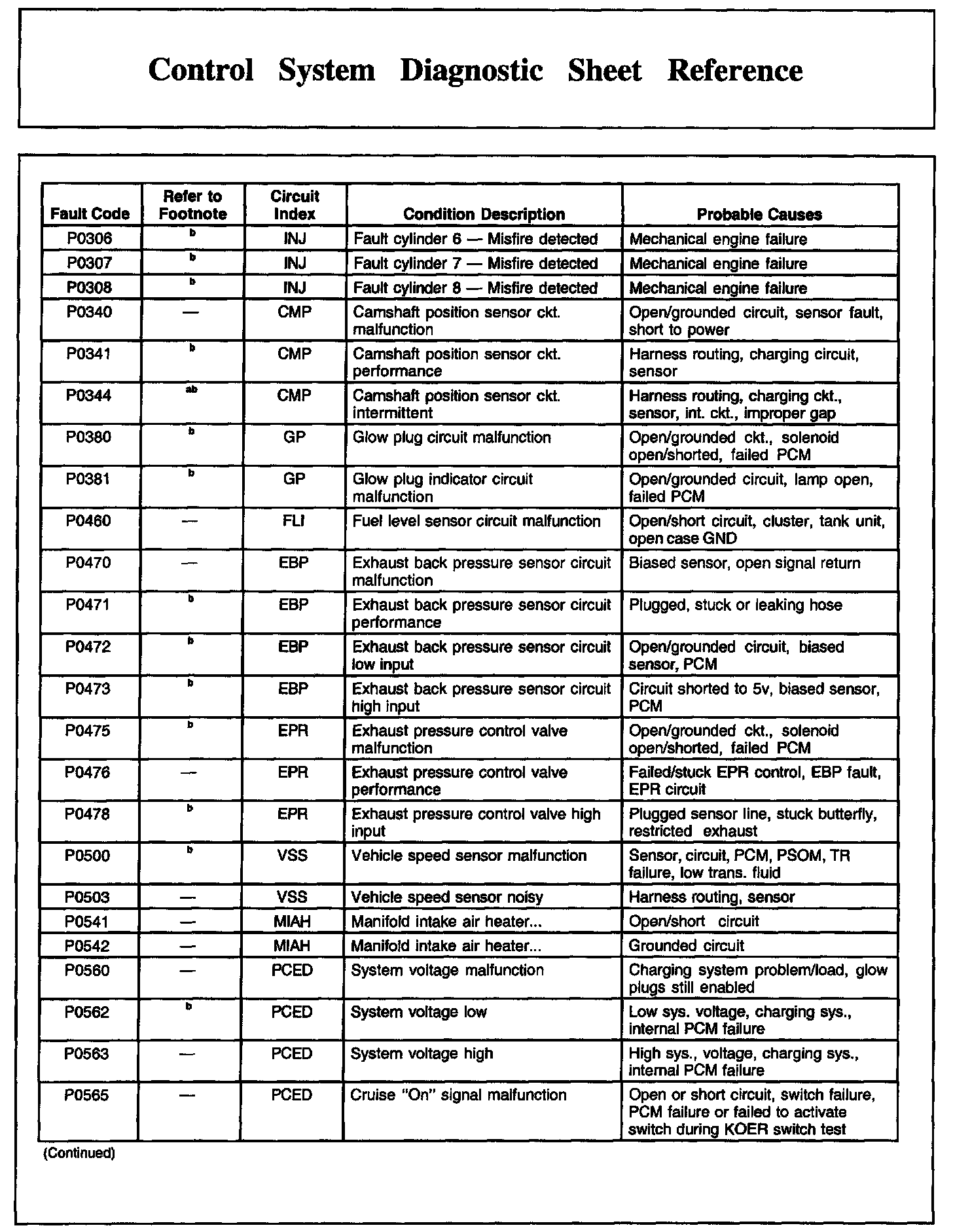 Control System Diagnostic Sheet Reference, Part 9: