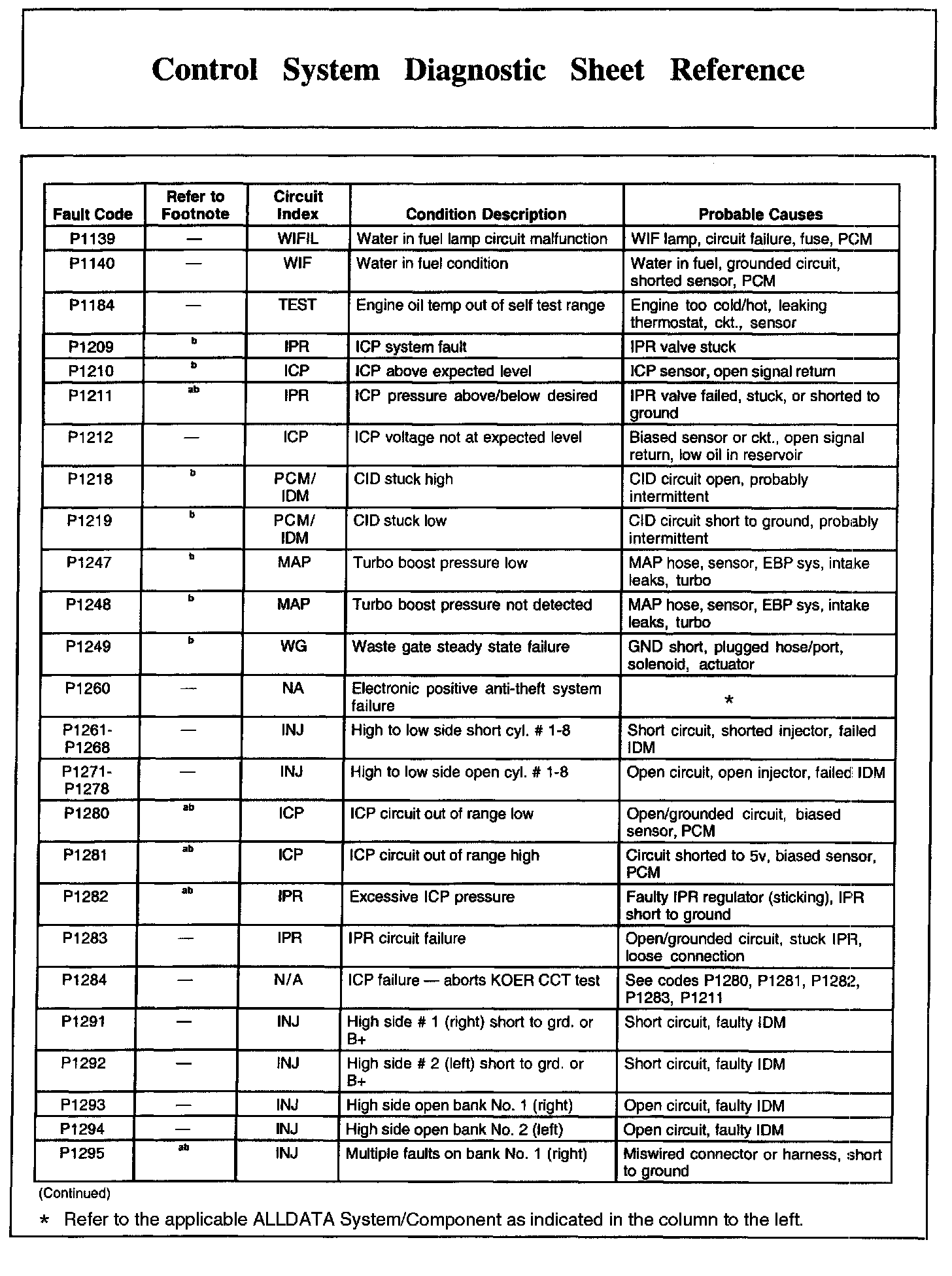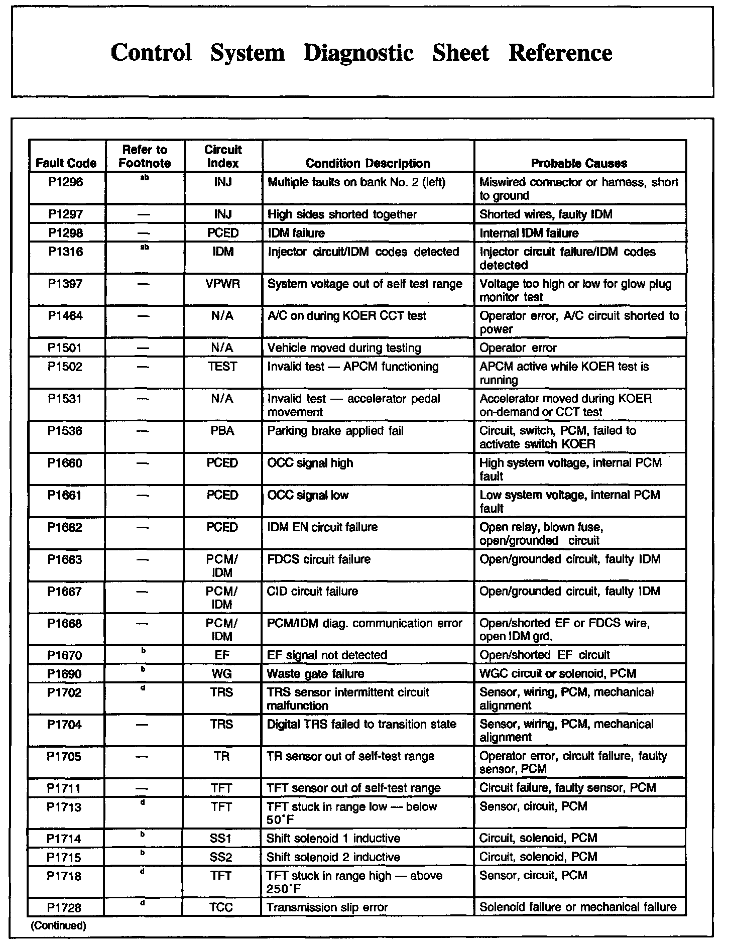 Control System Diagnostic Sheet Reference, Part 1: