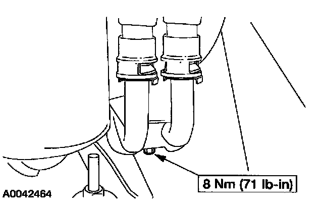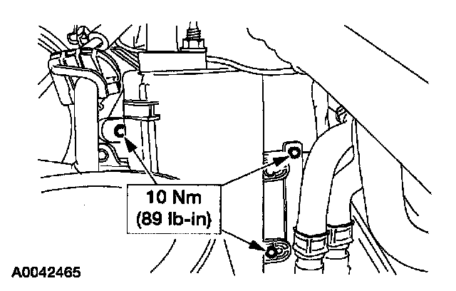 2. Remove the bolt and position the auxiliary heater lines aside.