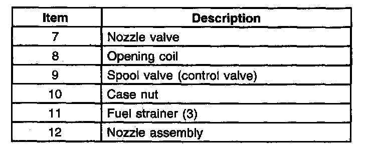 The Electro-Hydraulic Injector Fuel Plunger is located in the injector and is driven by the amplifier piston. The fuel plunger injects fuel into the combustion chamber at pressures of up to 196,500 kPa (28,500 psi) through the nozzle assembly. Fuel is supplied to the injector at approximately 345 kPa (50 psi) through fuel rails in the cylinder heads.