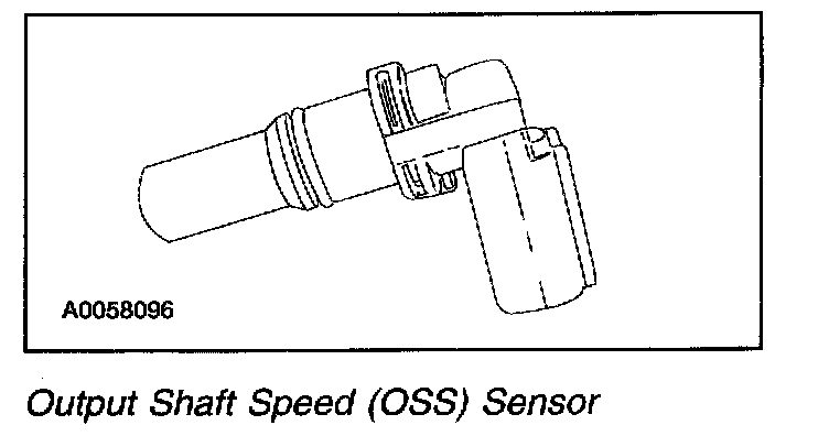 The Output Shaft Speed (OSS) sensor detects the speed of the transmission output shaft. The sensor uses variations in a magnetic field caused by a tone wheel to generate a pulse train output corresponding to shaft speed. The OSS sensor gear uses a repetitive pattern of three different angler displacements between teeth. The magnetic sensor element may be a Hall effect sensor or a magnetic pick-up. Due to the open collector design and the RC timing involved in the pull-up, the rising edge of the OSS sensor gear is not a reliable edge for critical timing, only the falling edge. The pull-up resistor is located in the PCM to provide a current for the sensor. This applies specifically to the automatic transmission.