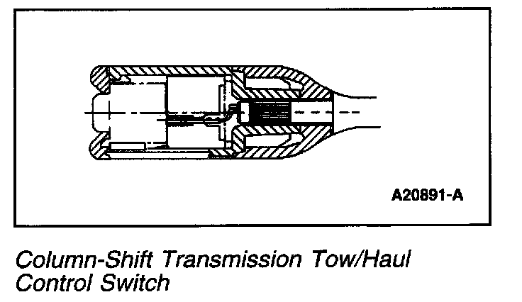 The Transmission Tow/Haul Control switch signals the PCM with key power whenever the transmission tow/haul control switch is pressed. On vehicles with this feature, the tow/haul indicator illuminates (refer to Transmission and Drivetrain for more information and diagnostics) when the transmission tow/haul control switch is cycled to engage and disengage the tow/haul strategy. The operator of the vehicle controls the position of the transmission tow/haul control switch.