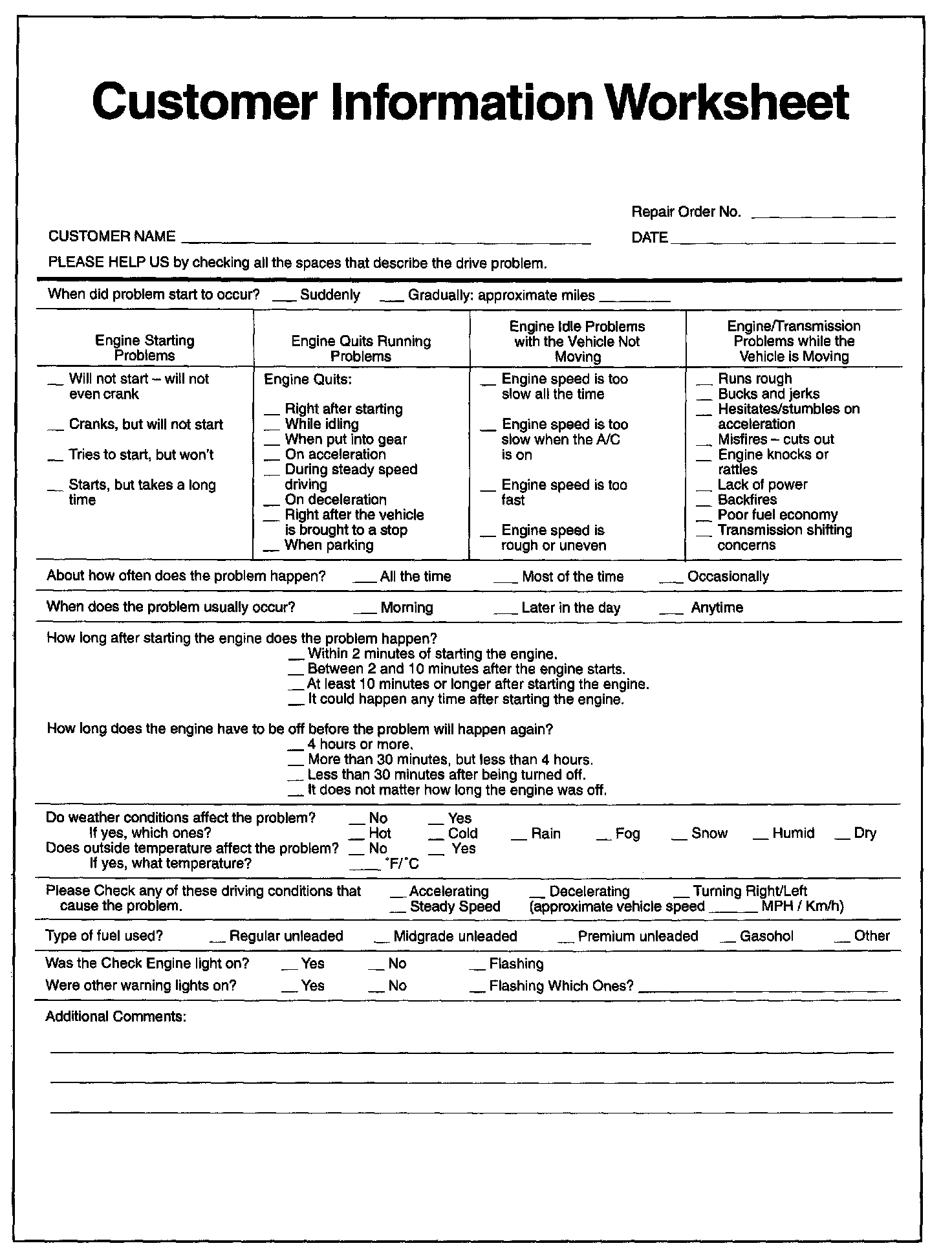 Customer Information Worksheet: