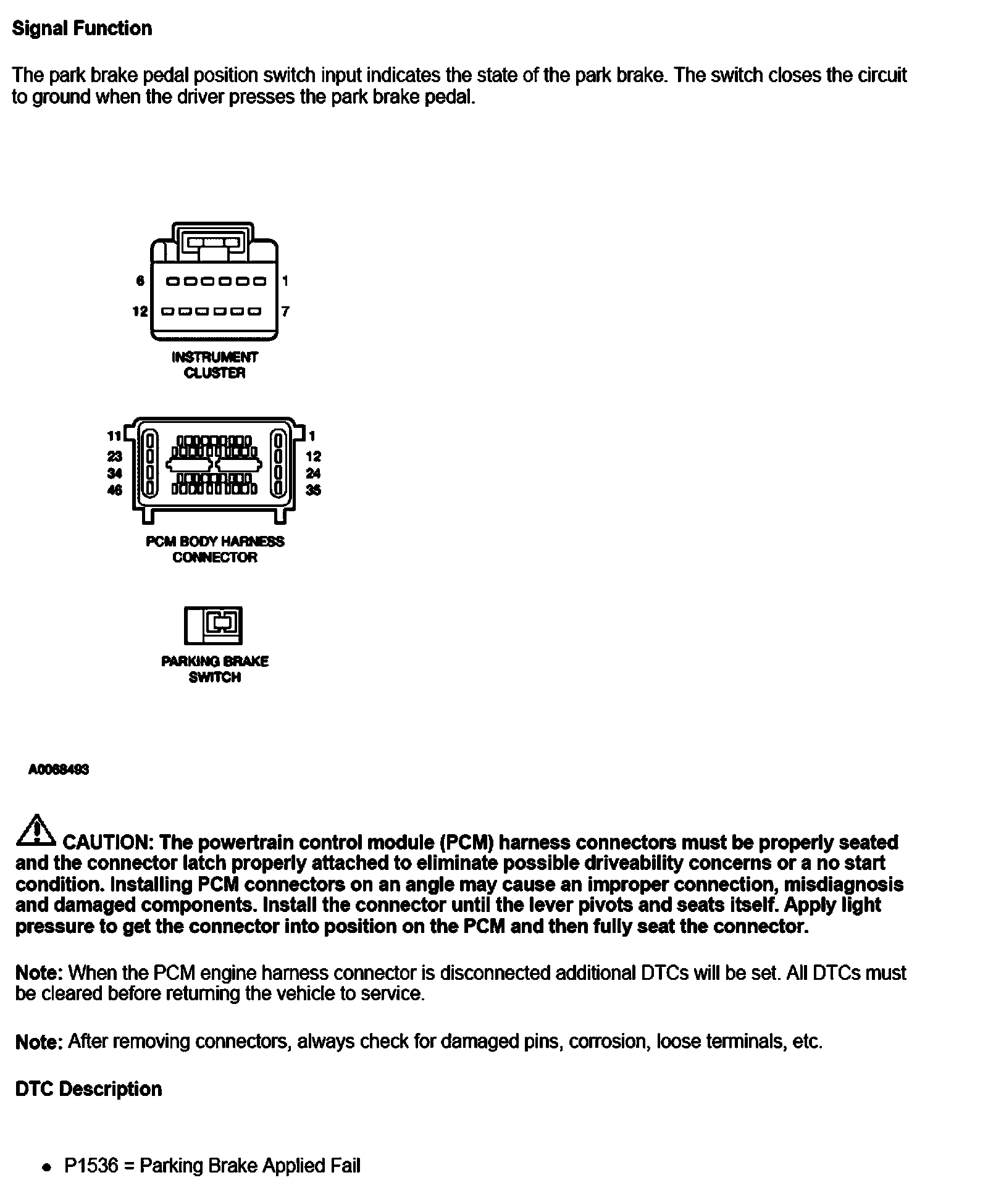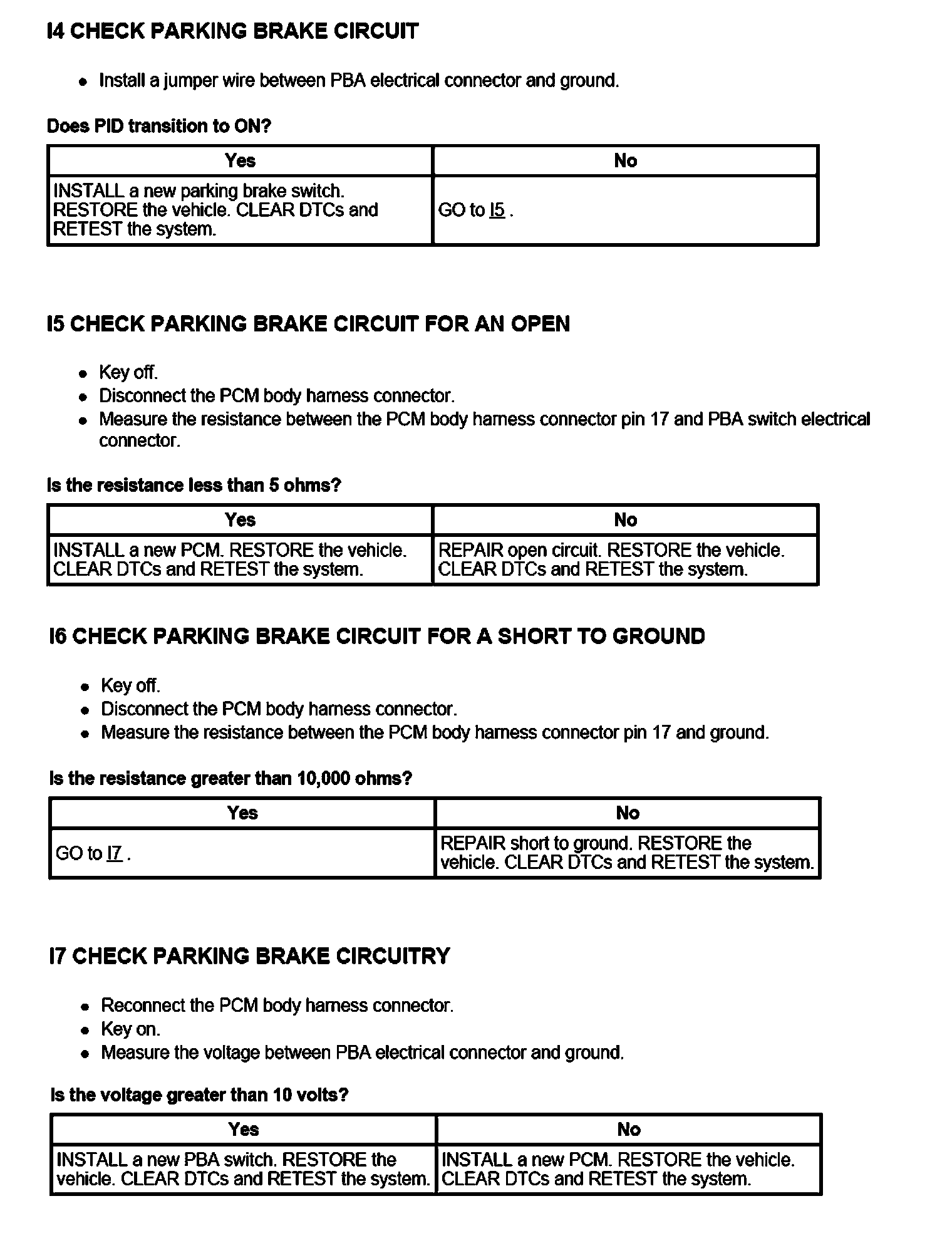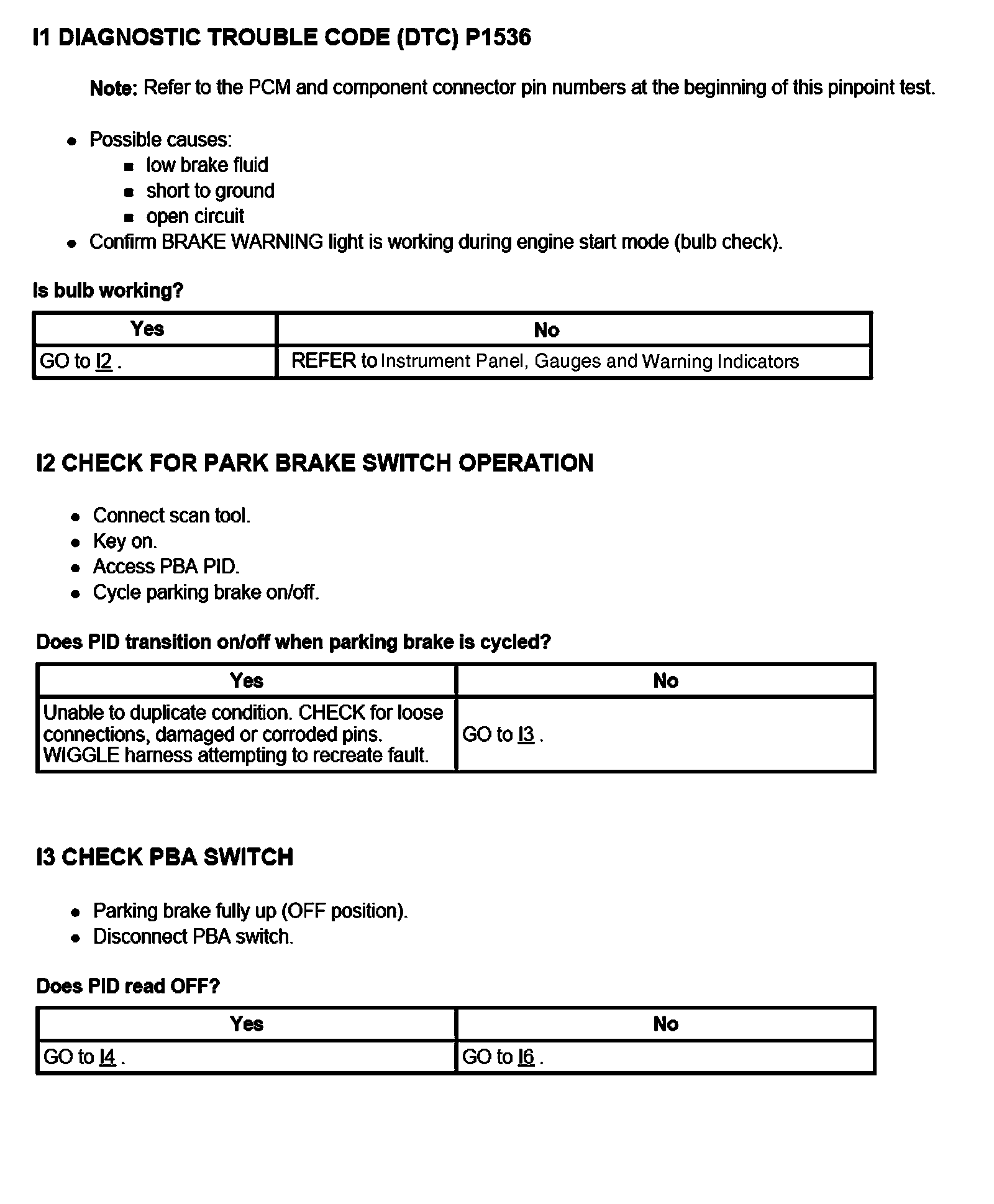 PINPOINT TEST I: PARKING BRAKE APPLIED (PBA) SWITCH