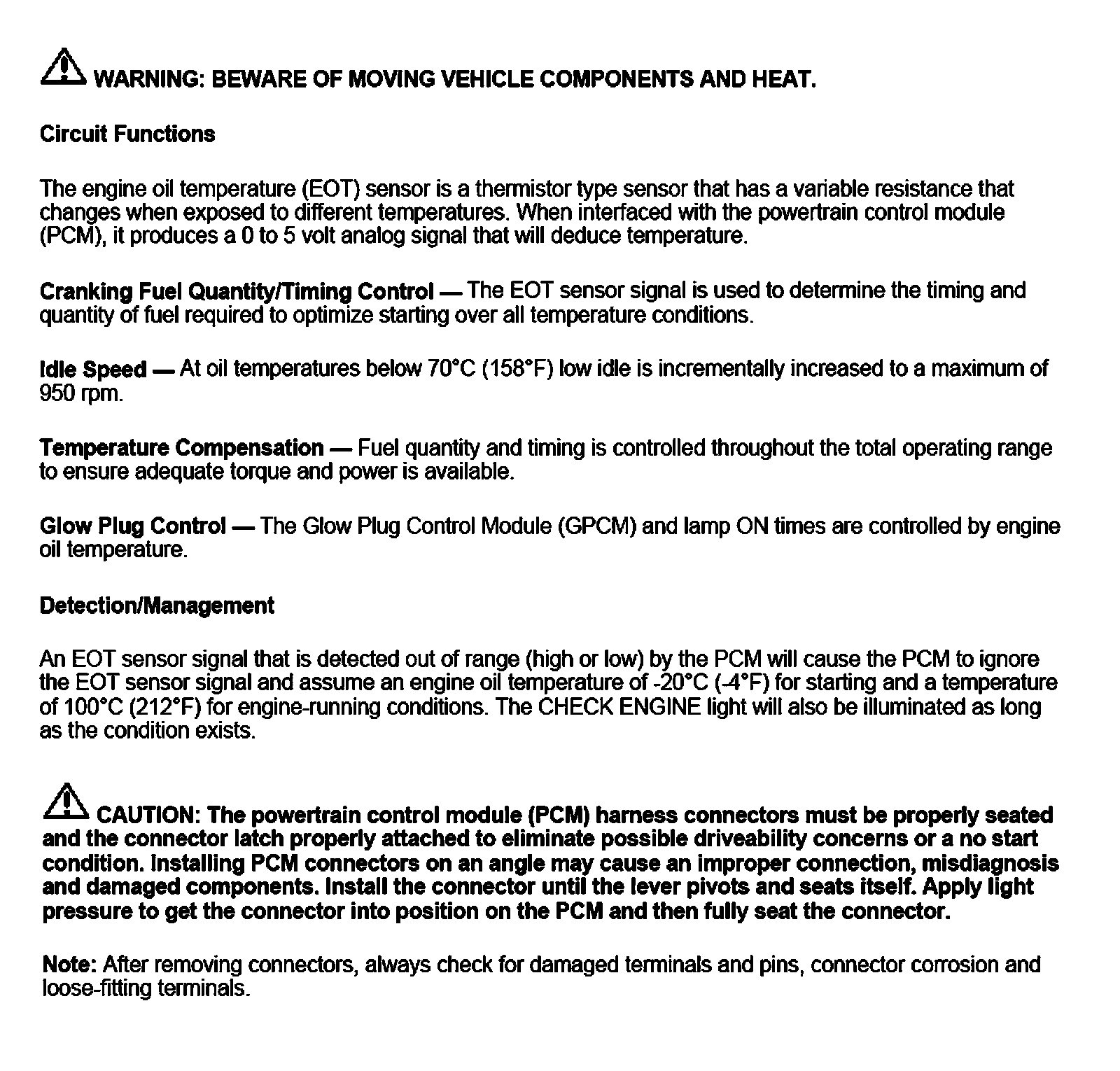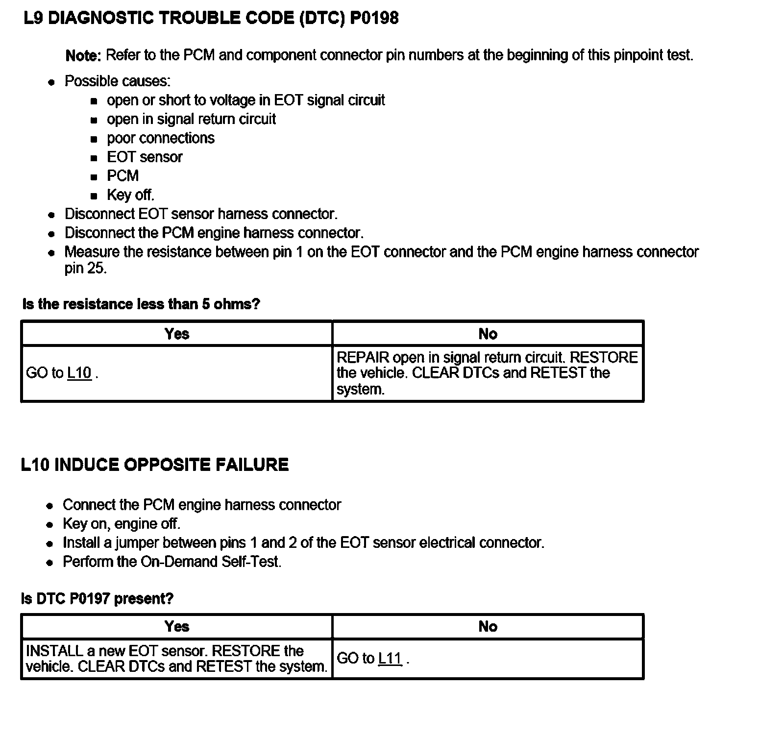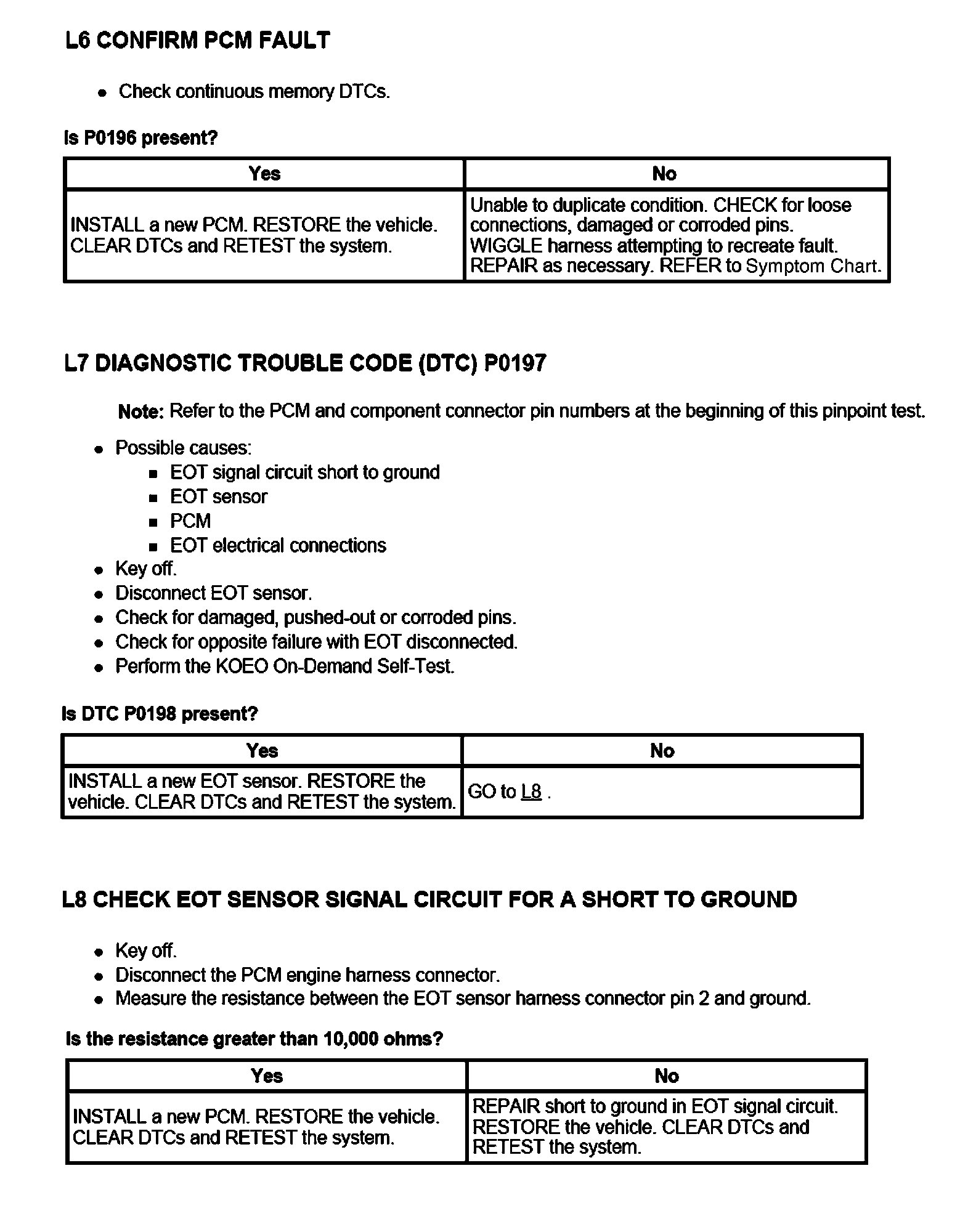 PINPOINT TEST L: ENGINE OIL TEMPERATURE (EOT) SENSOR