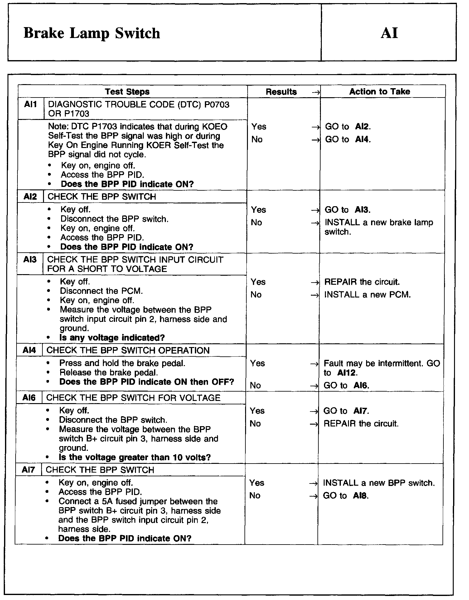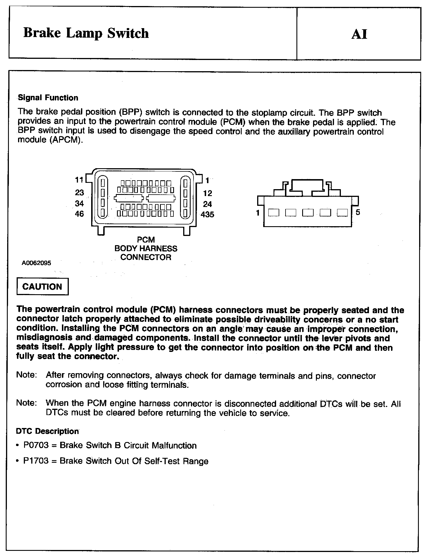 PINPOINT TEST AI: BRAKE LAMP SWITCH