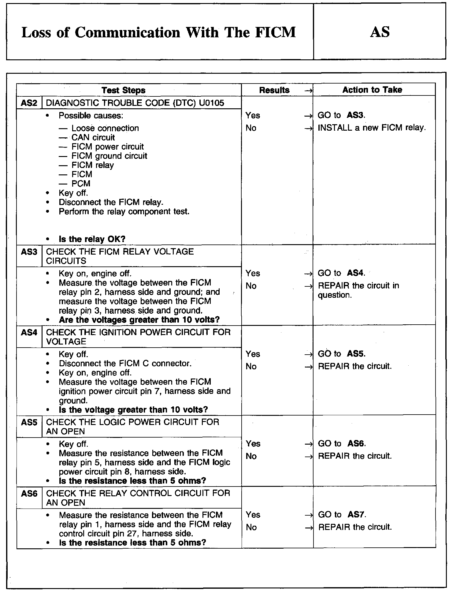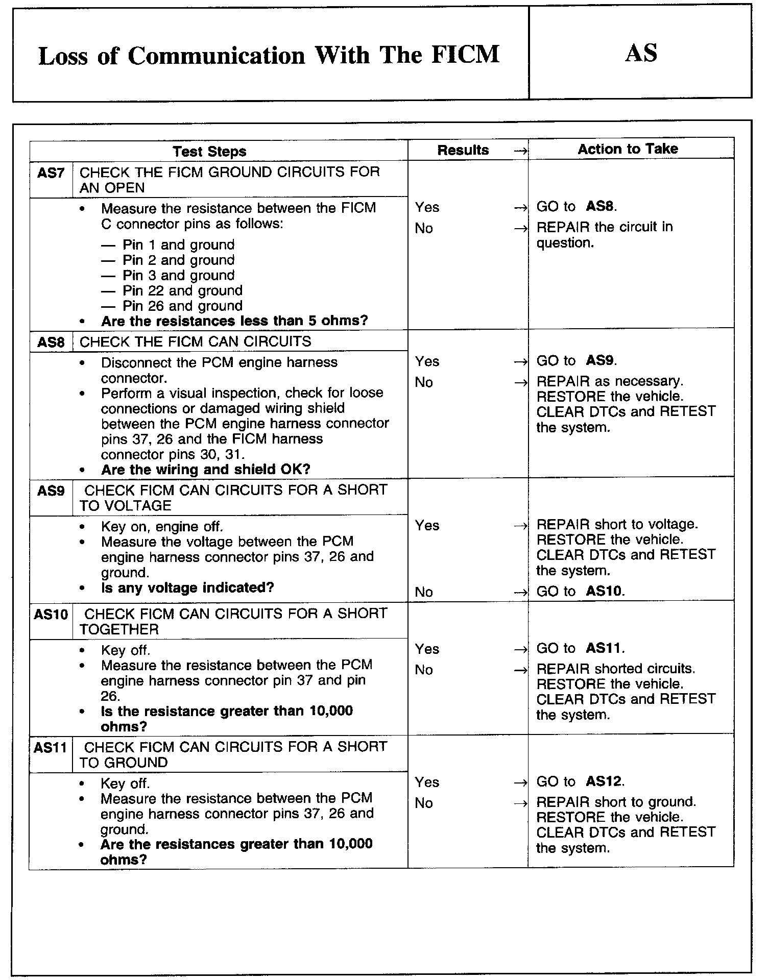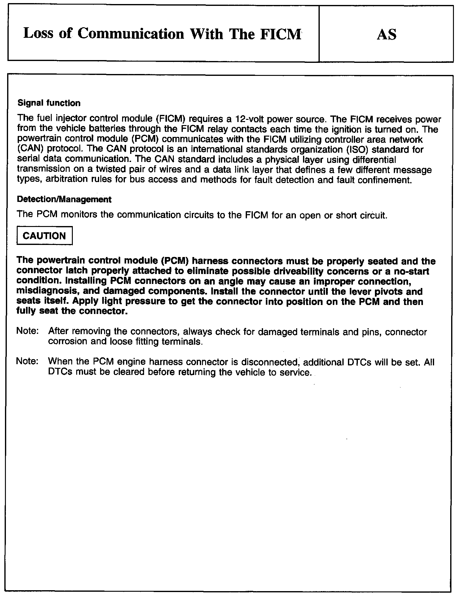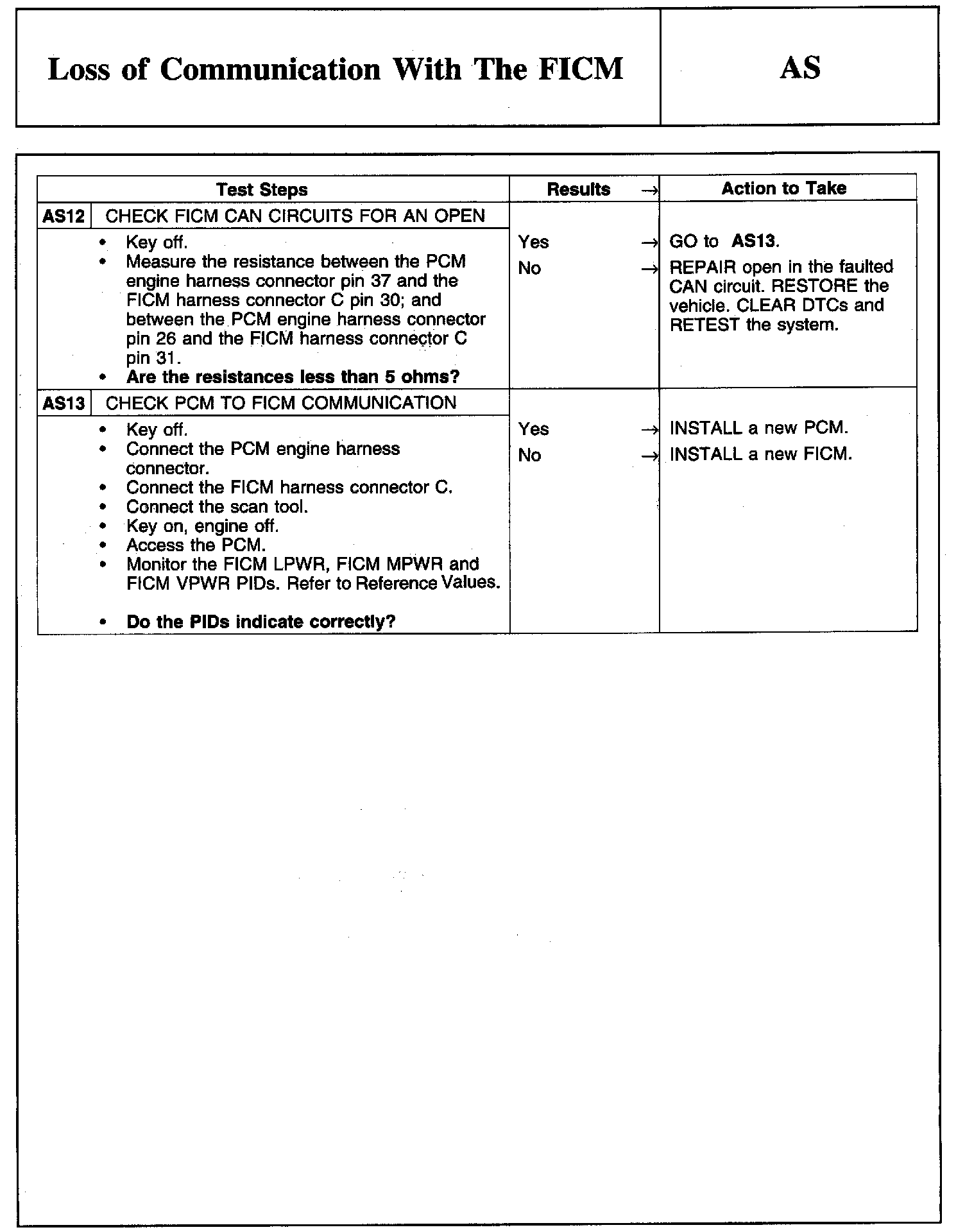 PINPOINT TEST AS: LOSS OF COMMUNICATION WITH THE FICM