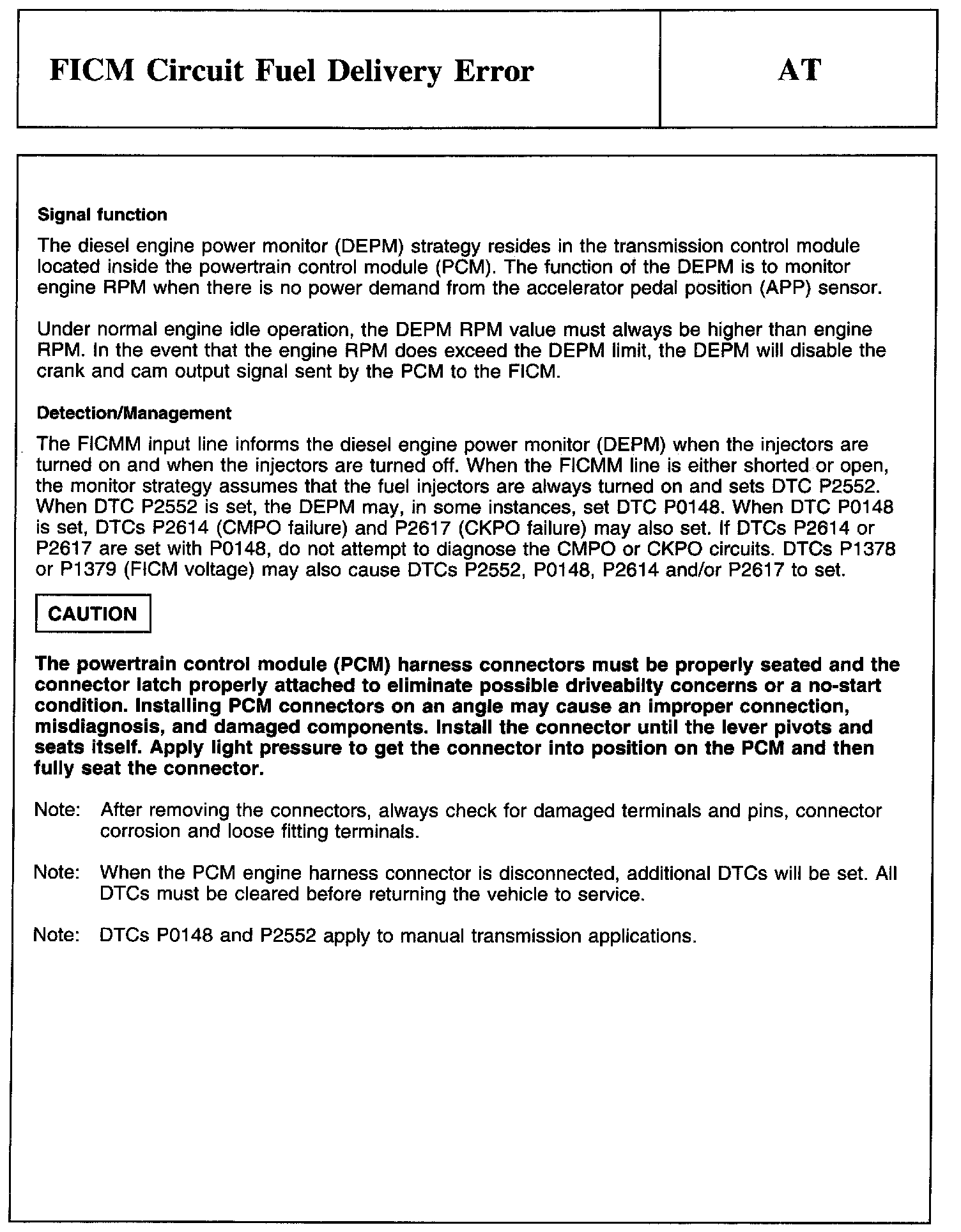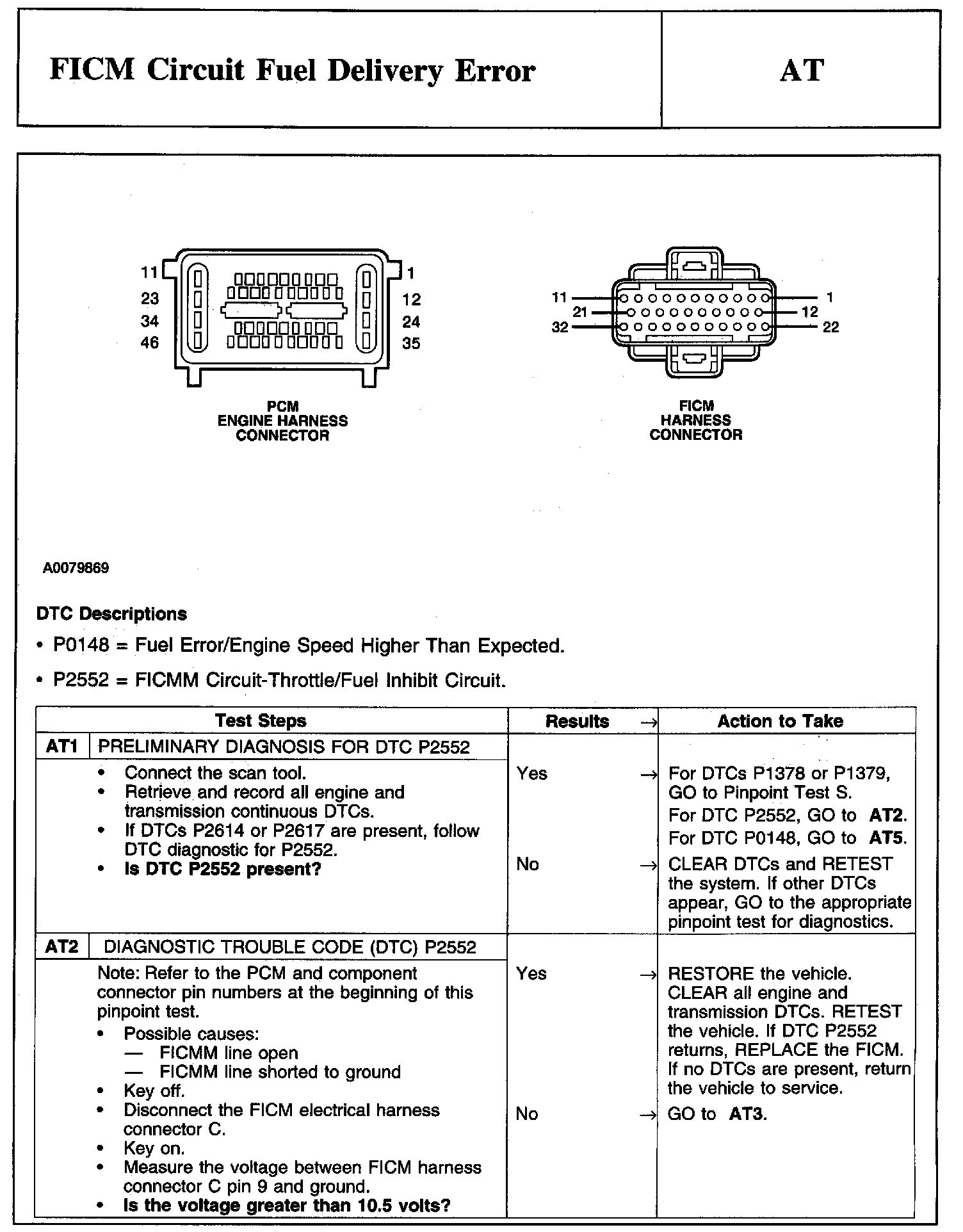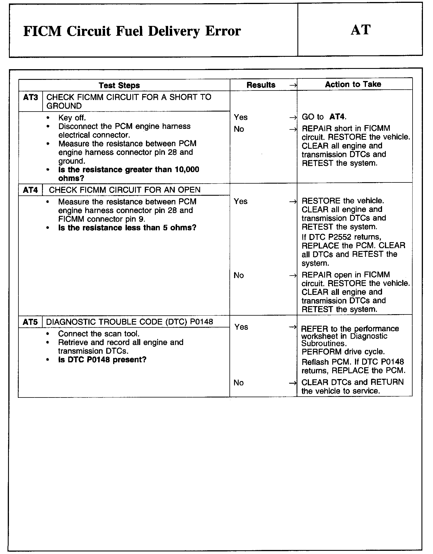 PINPOINT TEST AT: FICM CIRCUIT FUEL DELIVERY ERROR