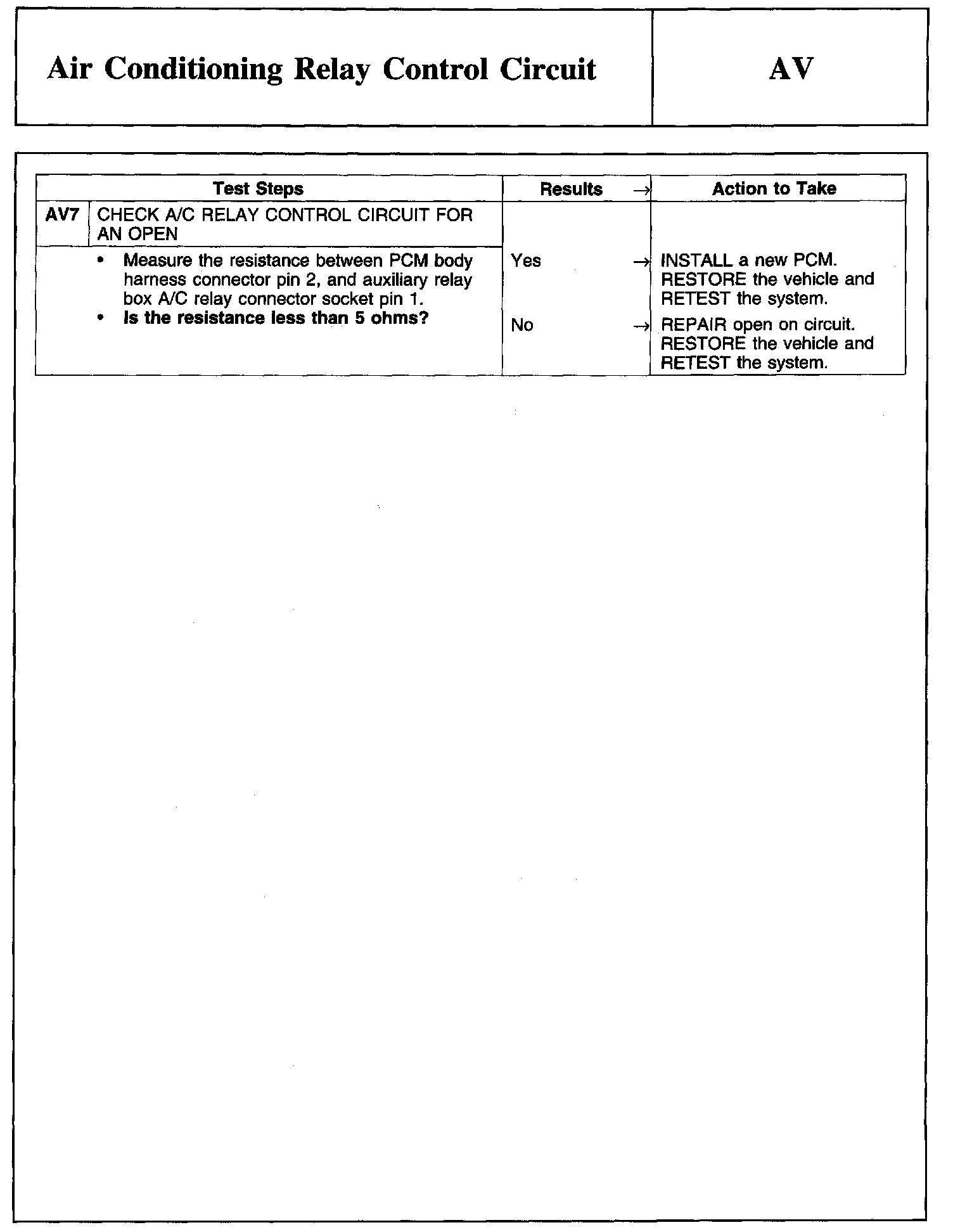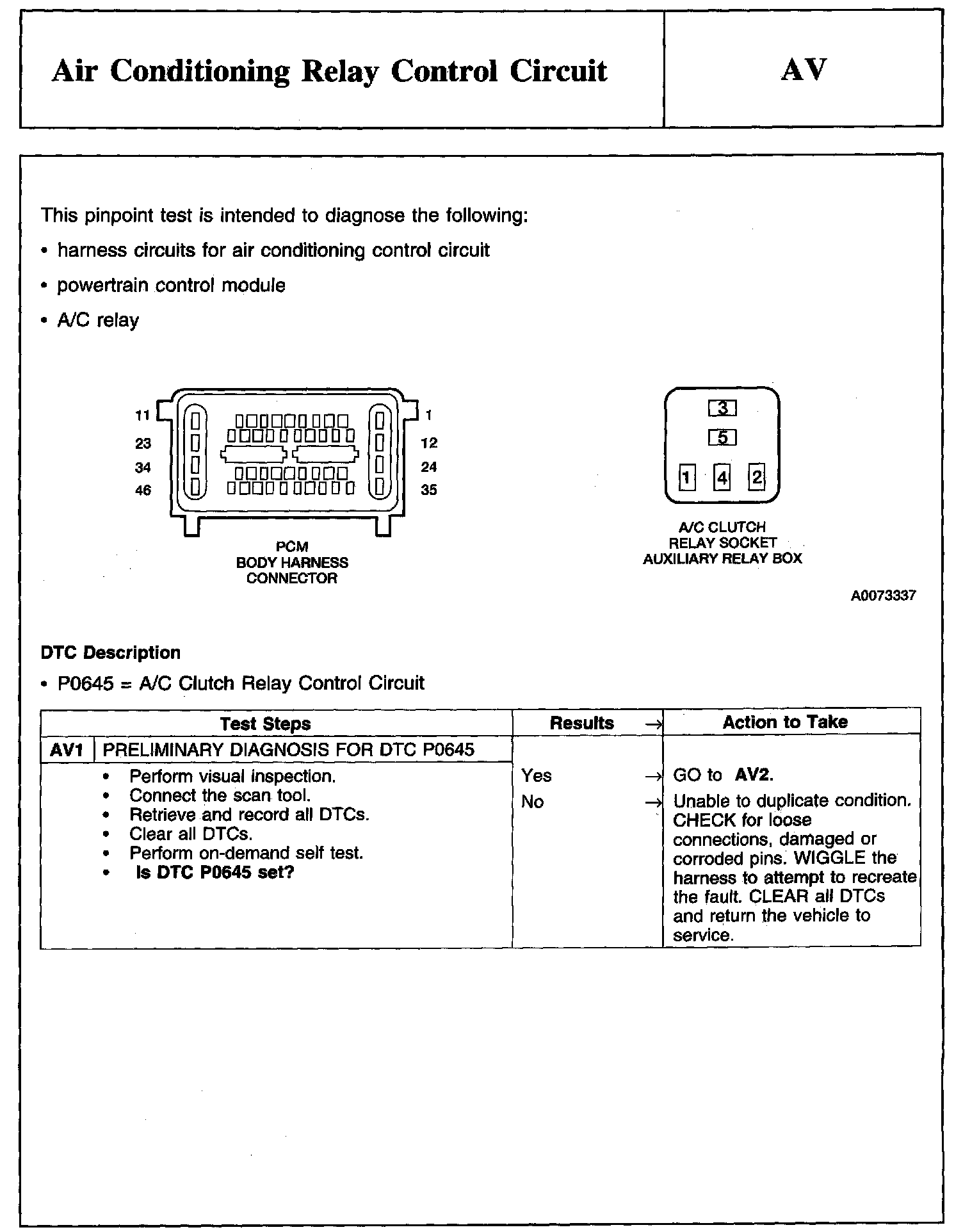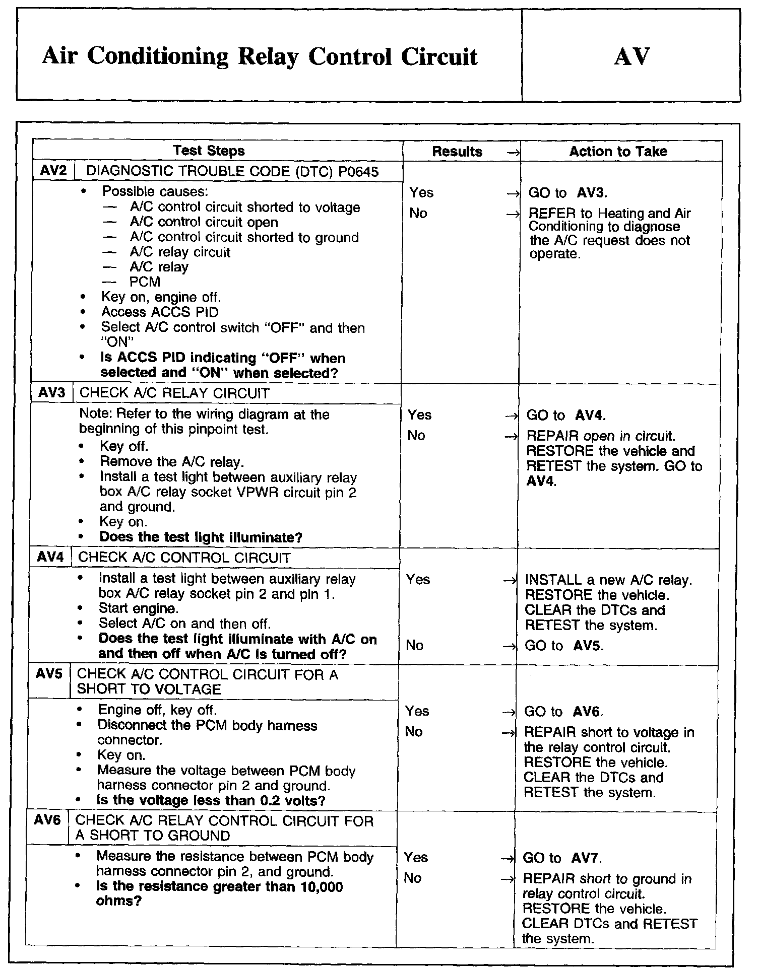 PINPOINT TEST AV: AIR CONDITIONING RELAY CONTROL CIRCUIT