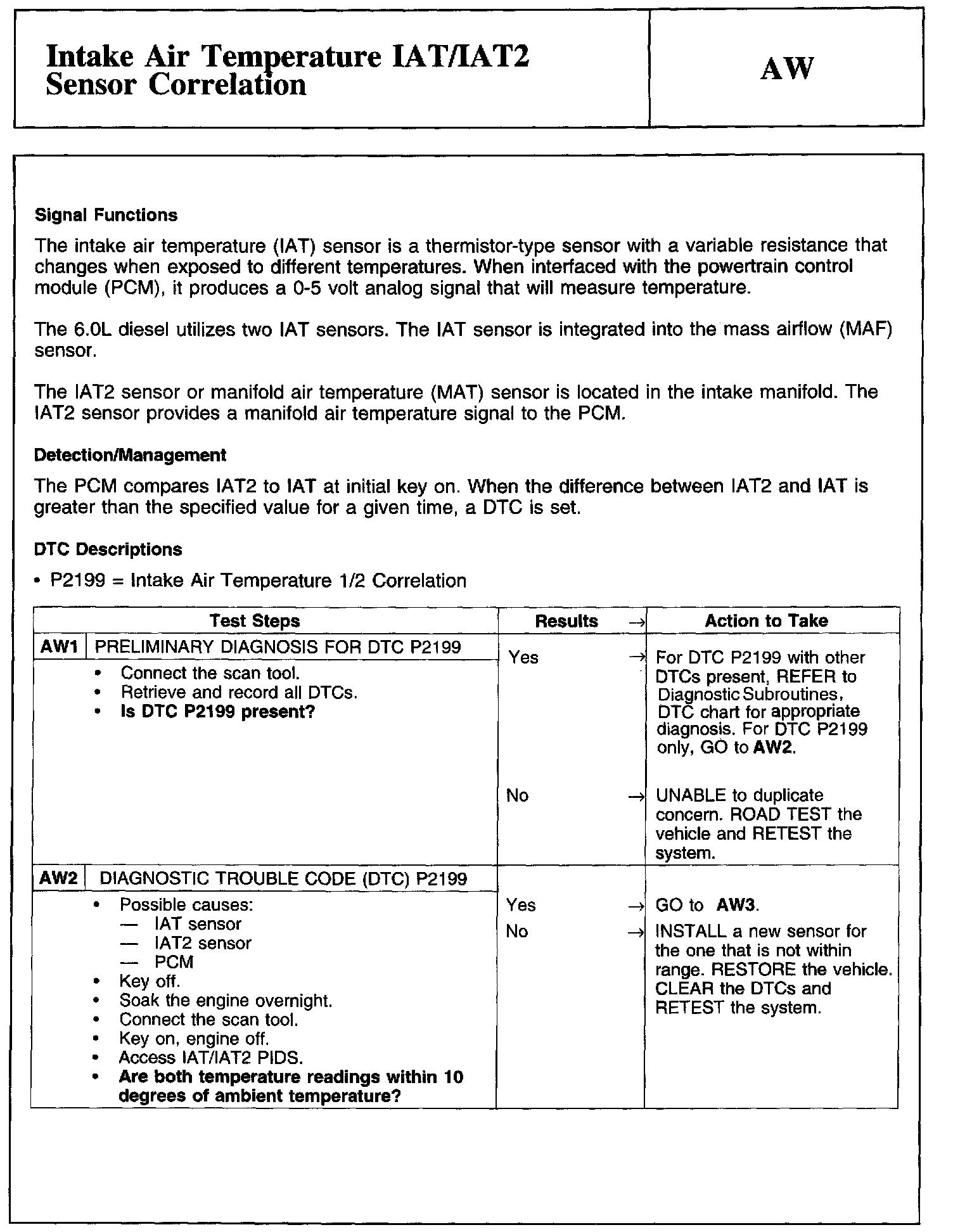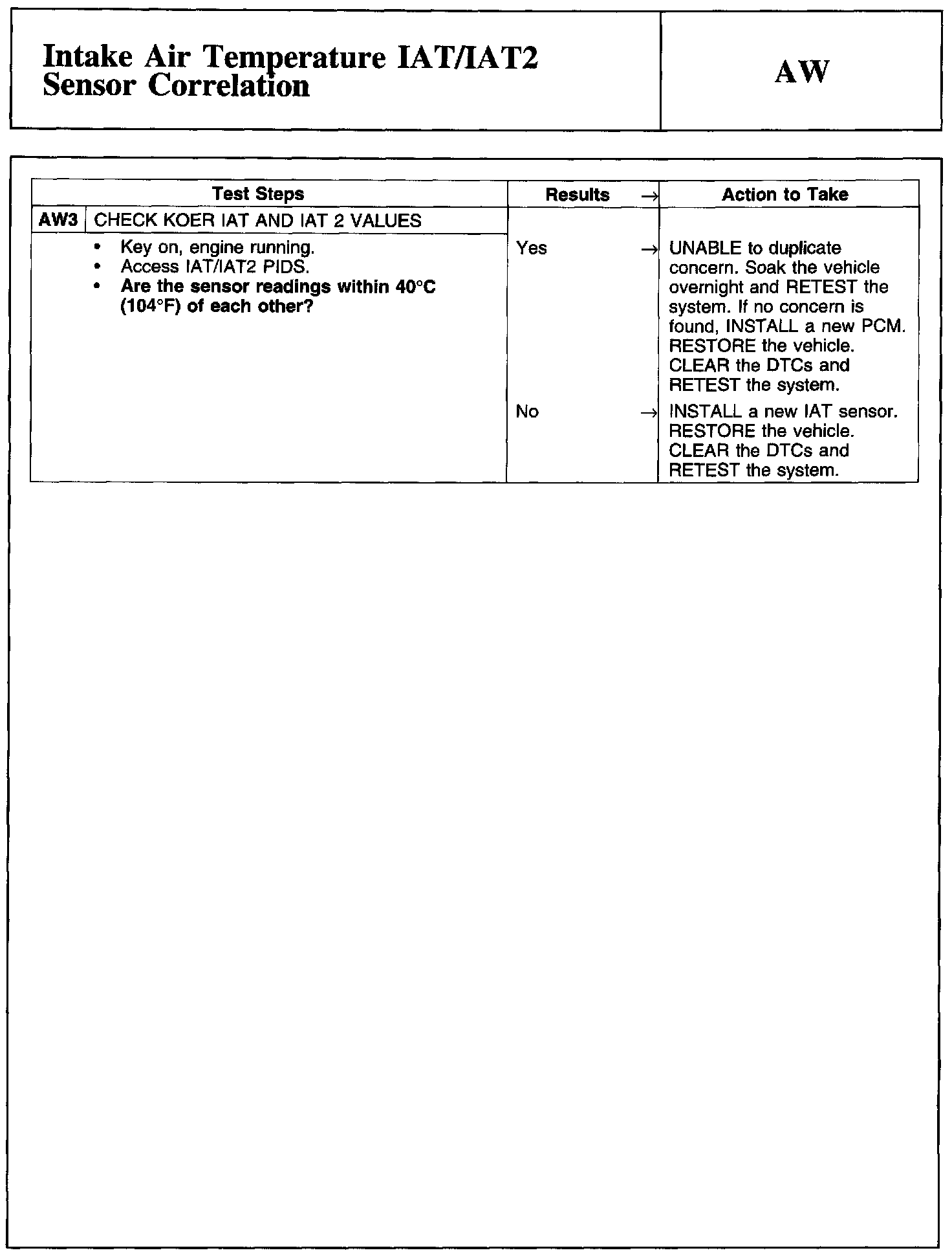 PINPOINT TEST AW: INTAKE AIR TEMPERATURE IAT/IAT2 SENSOR CORRELATION