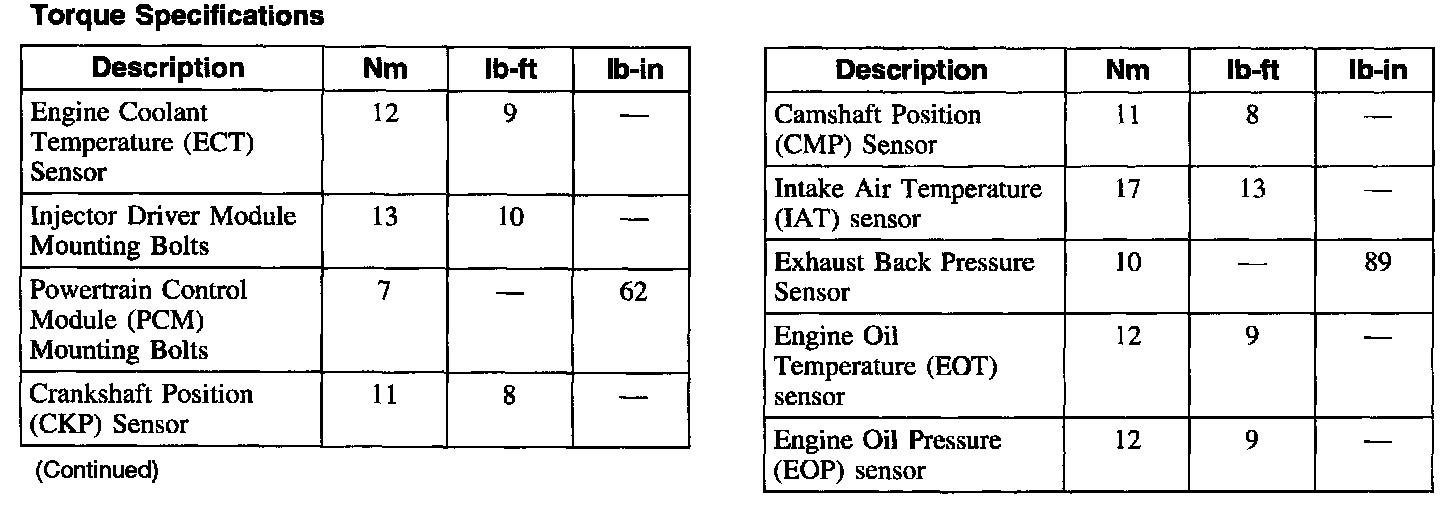 Torque Specifications: