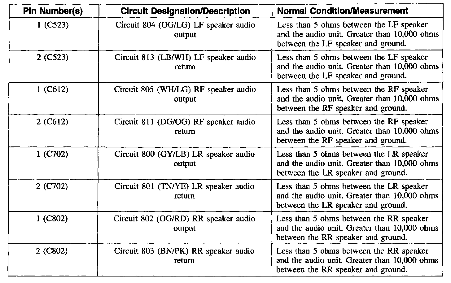 Speaker C523 (LF), C612 (RF), C702 (LR), C802 (RR)