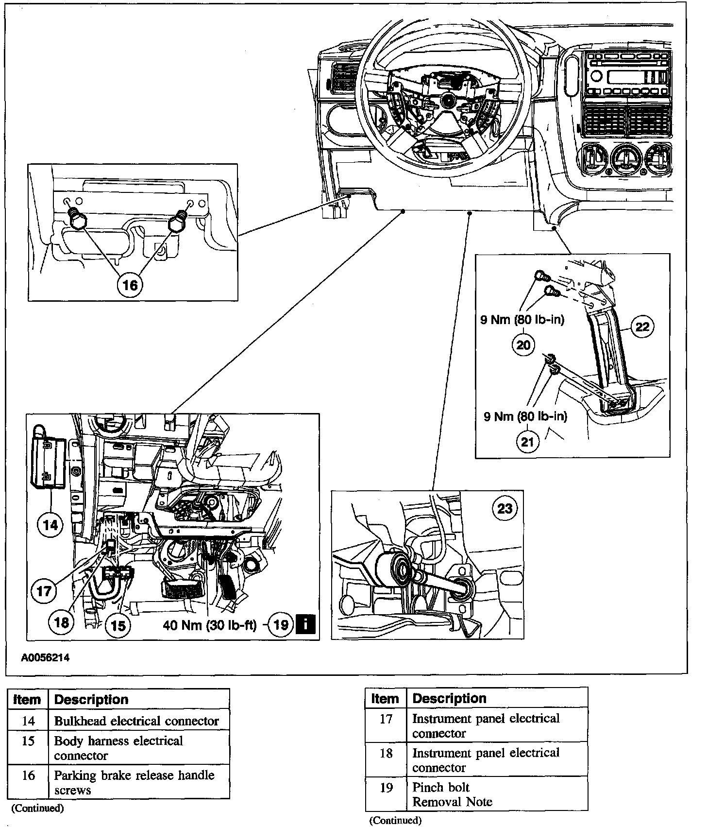 Item 41: Instrument Panel Bolts Removal Note
