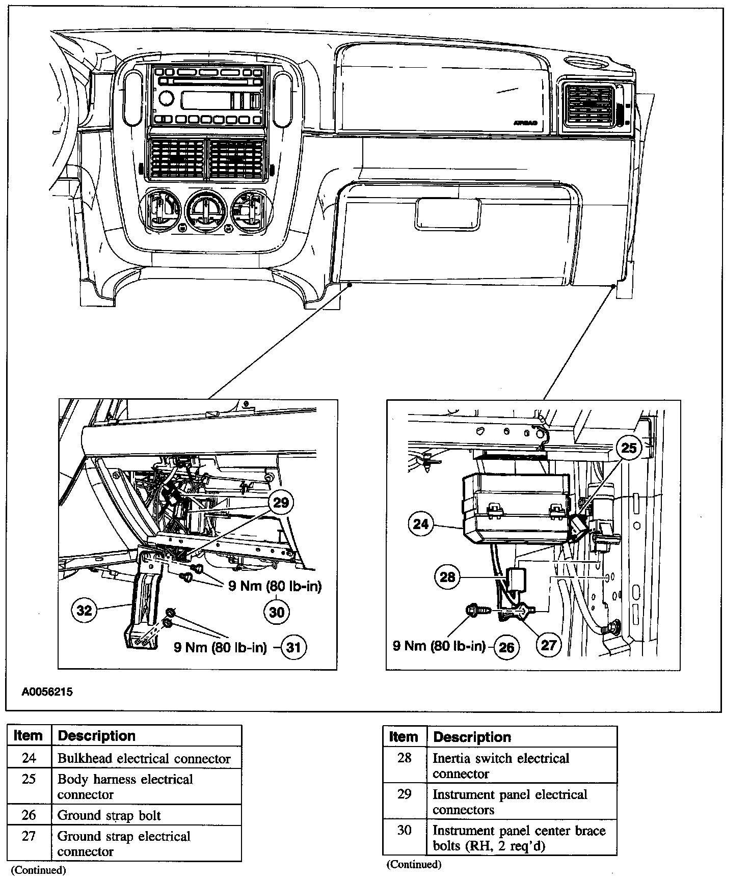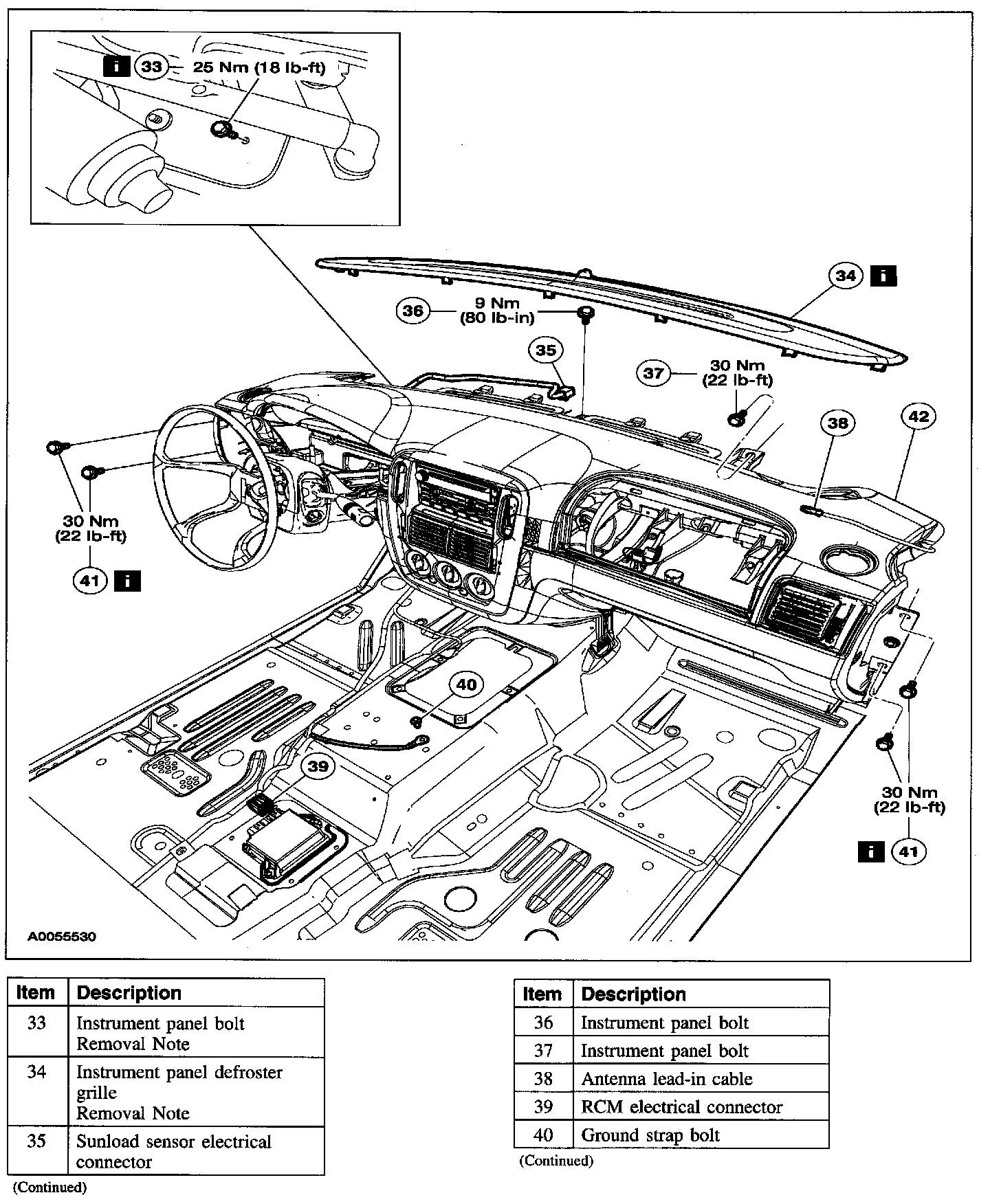 Item 33: Instrument Panel Bolt Removal Note
