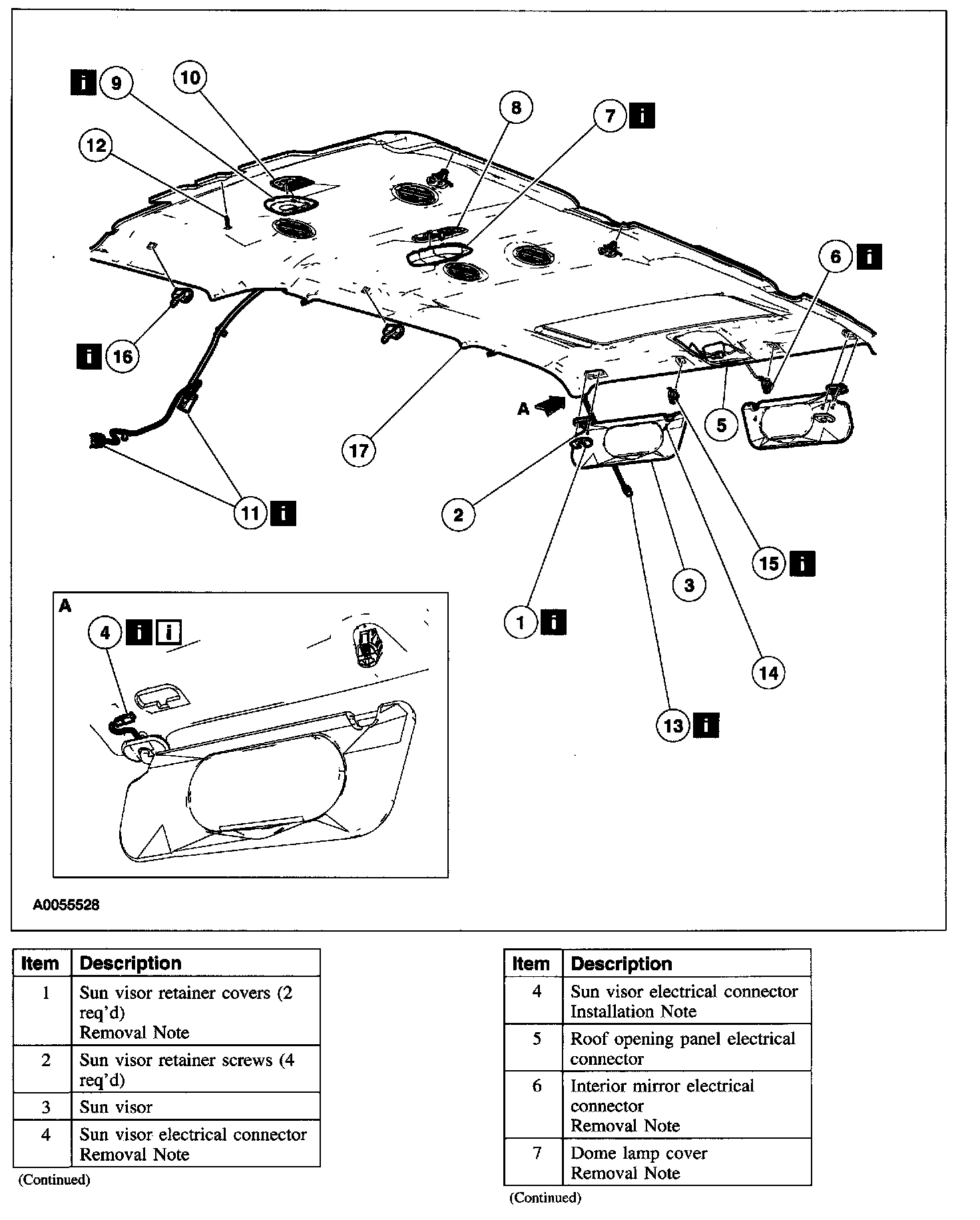 Item 4: Sun Visor Electrical Connector Removal Note