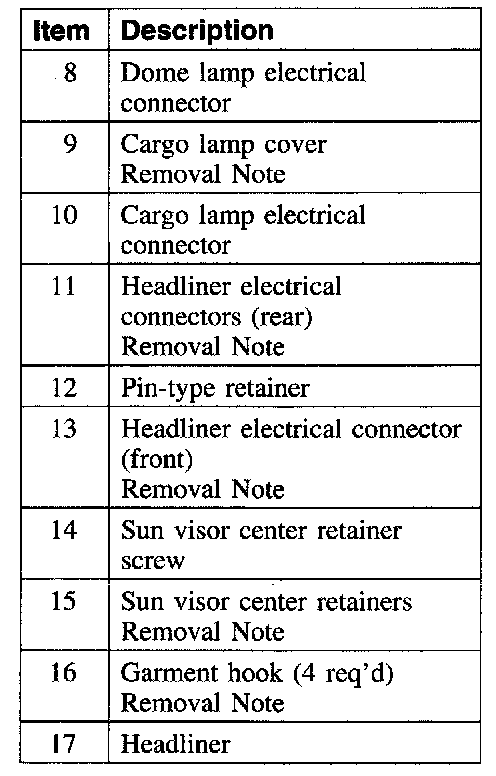 Item 15: Sun Visor Center Retainer Removal Note