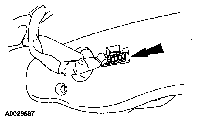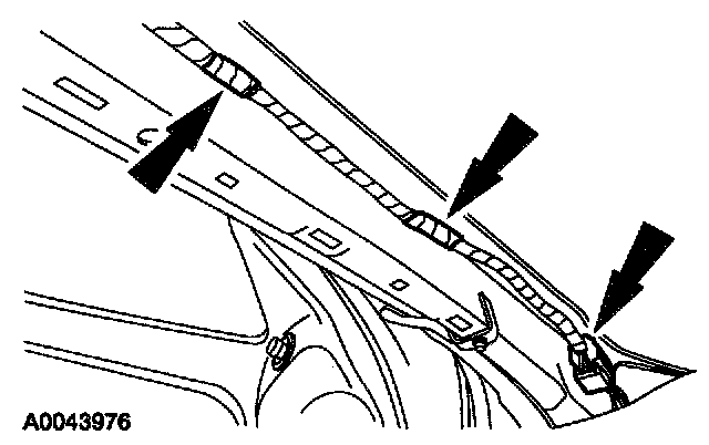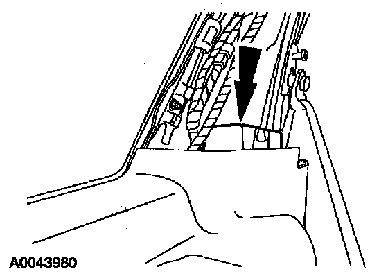 1. Disconnect the electrical connector and the wiring pin-type retainers on the A-pillar.