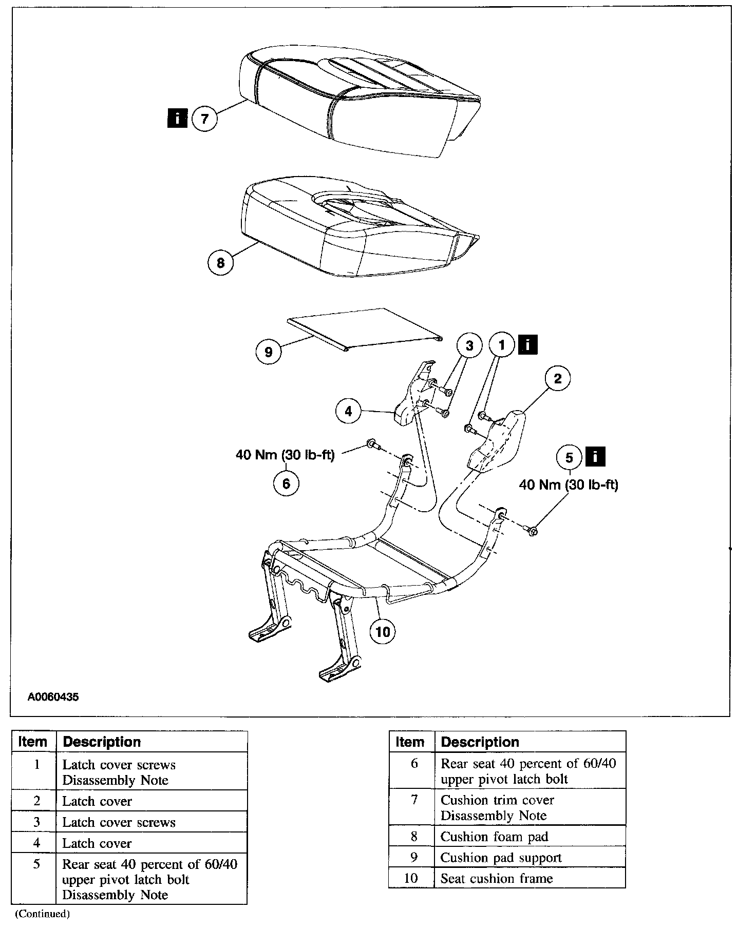 REAR SEAT CUSHION - 40 PERCENT OF 60/40 BENCH, SECOND ROWDISASSEMBLY